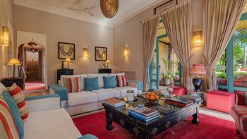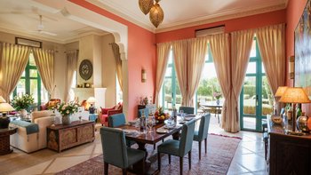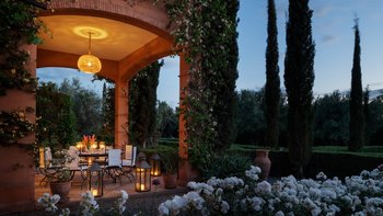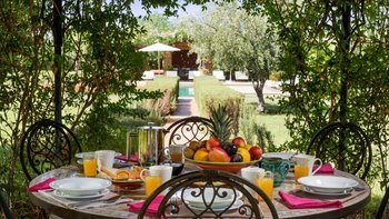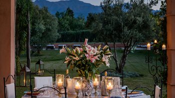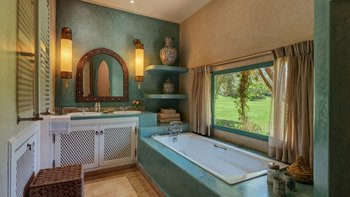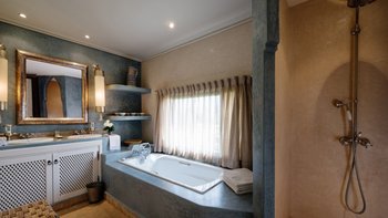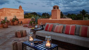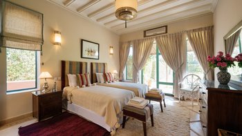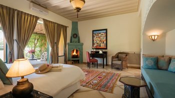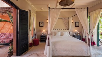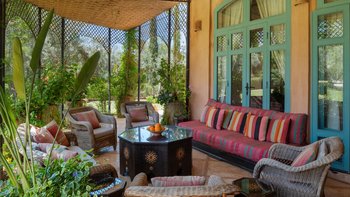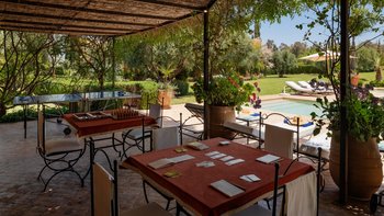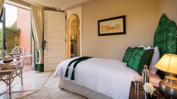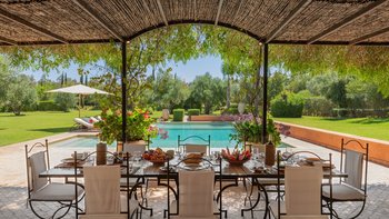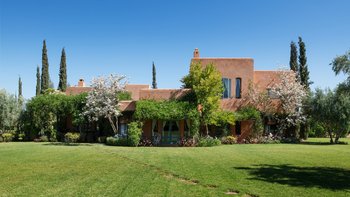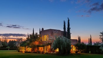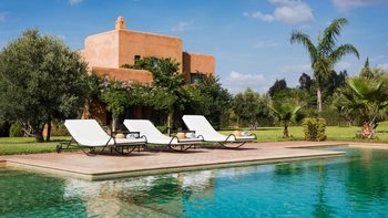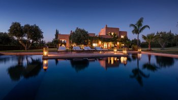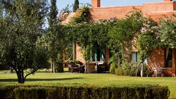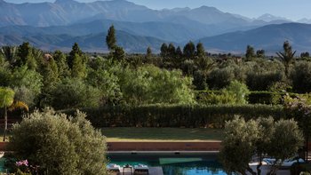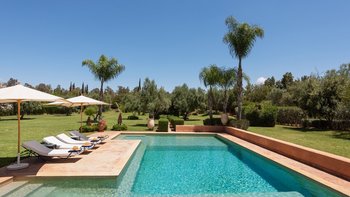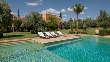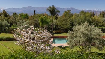 Diese prächtige Villa mit inklusive Kochservice liegt eingebettet in einen 2 Hektar großen Garten mit Rasen, mit herrlichem Blick auf das Atlasgebirge und in der Nähe von Marrakesch.