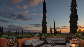 Das Anwesen erstreckt sich über drei Stockwerke und ist umgeben von zwei Hektar wunderschön angelegter Gärten und ist eine wunderschöne Kombination aus marokkanischer Authentizität und modernem Luxus. Mit vielen schattigen Terrassen, grünen Rasenflächen und Liegestühlen am Pool werden Sie sicher einen Lieblingsplatz zum Entspannen finden. Deren Dachterrasse mit Panoramablick auf das Atlasgebirge ist der perfekte Ort, um nach einem erfrischenden Bad im großen Privater Pool den Sonnenuntergang zu genießen und die Sterne zu beobachten. Im Erdgeschoss befindet sich ein geräumiger, aber gemütlicher OFFENER GRUNDRISS Wohnbereich mit Kamin und Fenstertüren, die auf die Terrasse und die Gärten führen. Drei der vier Schlafzimmer mit eigenem Bad befinden sich ebenfalls im Erdgeschoss mit Zugang zu den Gärten oder Terrassen.
