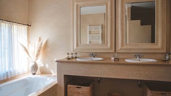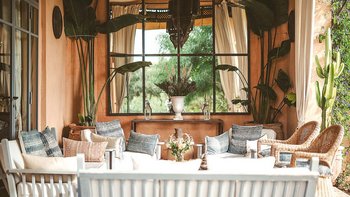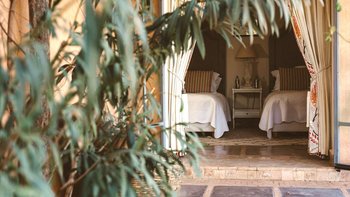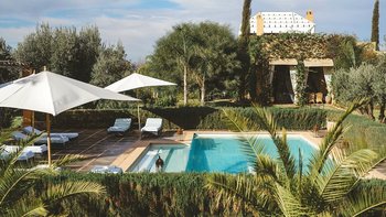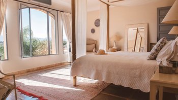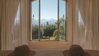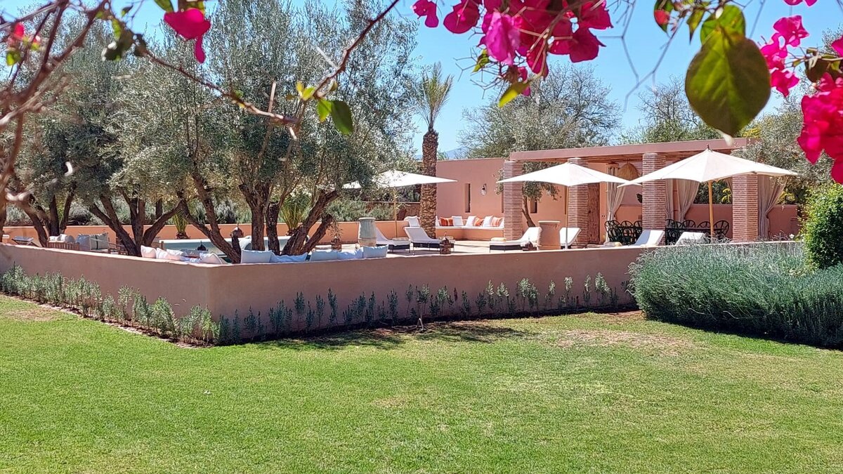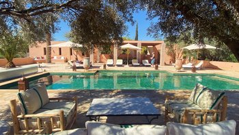 Eine sehr schicke und moderne Villa, die durchgehend in kühlen neutralen Farben eingerichtet ist, verfügt dieses wunderschöne Haus über Fliesenböden, Himmelzimmer, fabelhafte Bäder und ein Festmahl sorgfältig ausgewählter Kunstobjekte. Innerhalb der klimatisierten Villa öffnet sich jedes Zimmer zu einer Terrasse mit Blick auf das Gelände, eines schattig und möbliert für Mahlzeiten im Freien, das andere, eine Dachterrasse, die sich perfekt zum Beobachten der Sterne eignet. Es gibt einen kleinen Kaffee-/Frühstücksbereich in der stilvollen Küche; das Wohnzimmer ist elegant mit großen Sofas eingerichtet und grenzt an einen ebenso einladenden Speisesaal mit jeweils offenem Kamin für kühlere Abende; und es gibt vier Schlafzimmer im Erdgeschoss, das luxuriöse Hauptschlafzimmer bietet zusätzliche Privatsphäre auf der oberen Ebene. Im Außenbereich gibt es einen großen Swimmingpool und eine Pergola am Pool, die den Mittelpunkt in gepflegten Gärten mit Rasen, Rosen und Zitrusbäumen bilden. Und das Haus wird von engagierten Mitarbeitern bedient, wobei der talentierte Koch täglich das Frühstück und andere Mahlzeiten zubereitet. Auf dem Anwesen gibt es einen Concierge-Service, einen Tennisplatz, einen Golfplatz und einen Fitnessraum, und Marrakesch liegt in der Nähe von Souks und den besten Restaurants und stilvollen Einkaufsmöglichkeiten. Wir empfehlen auch einen Tag zum Wandern, Mittagessen und Teppichbummeln im Atlasgebirge.