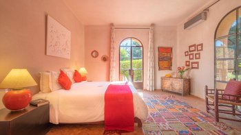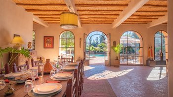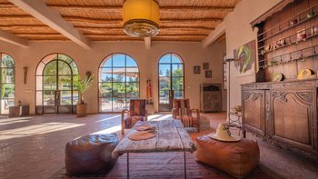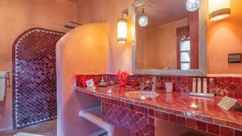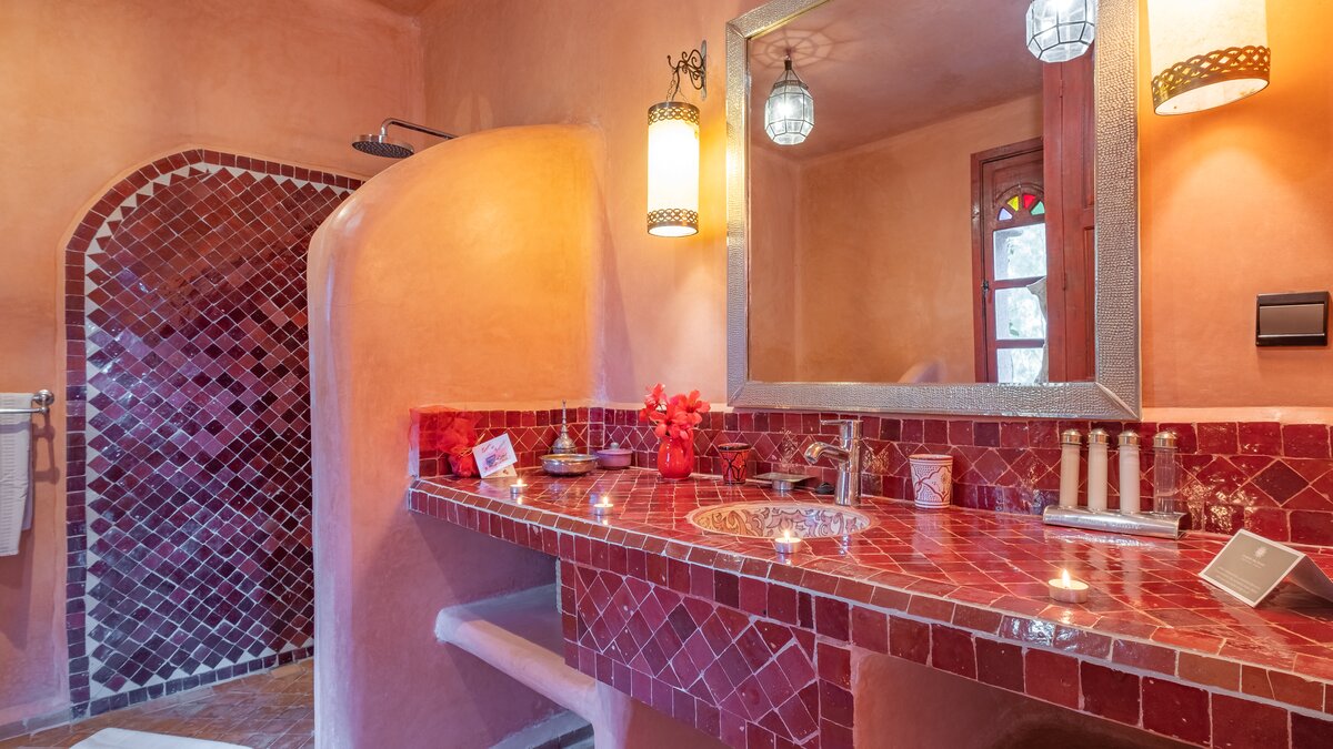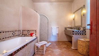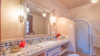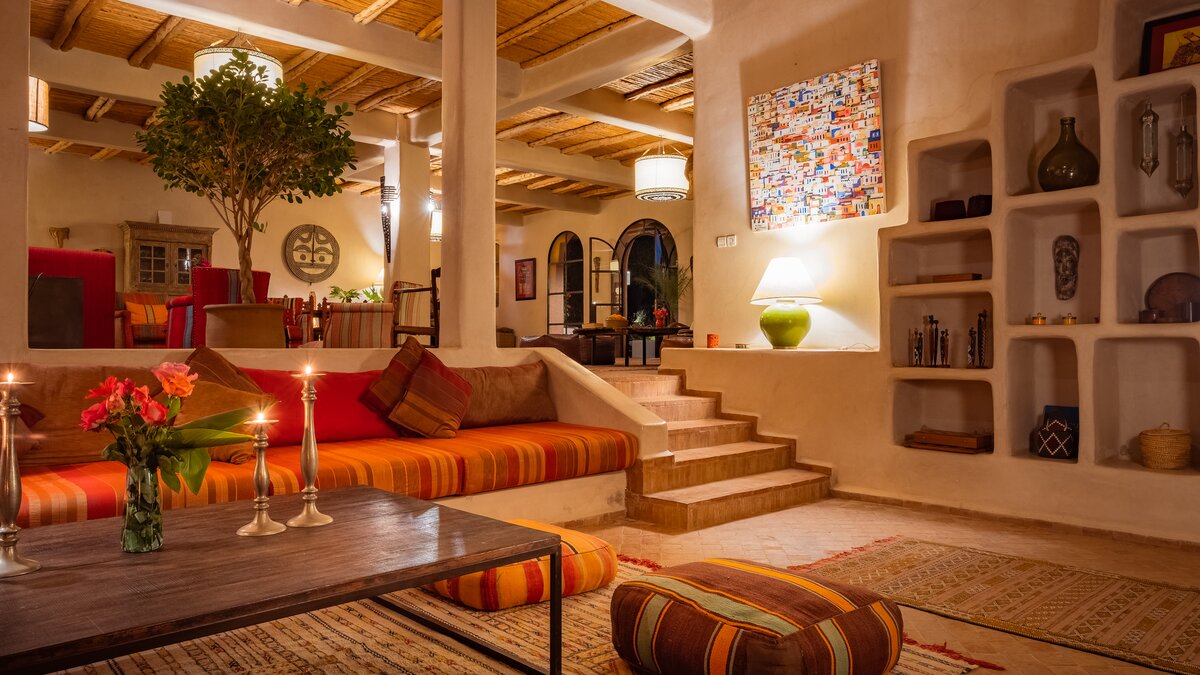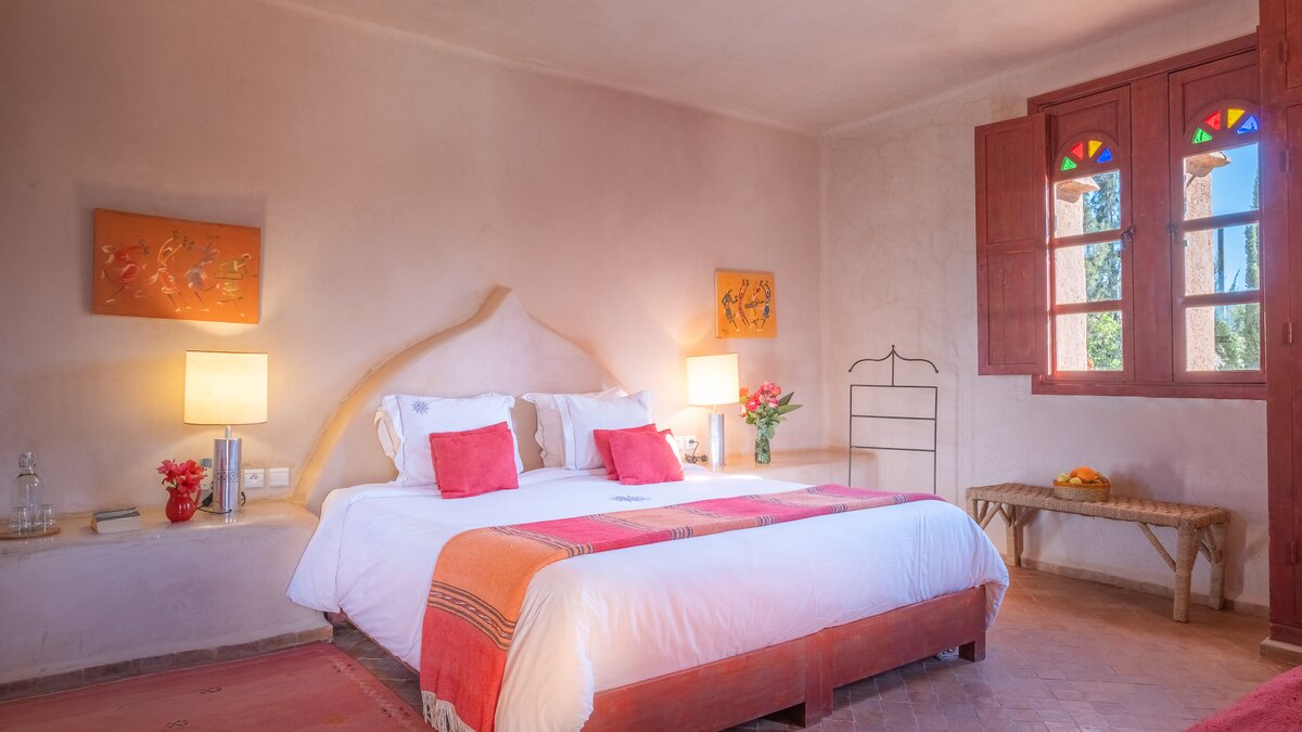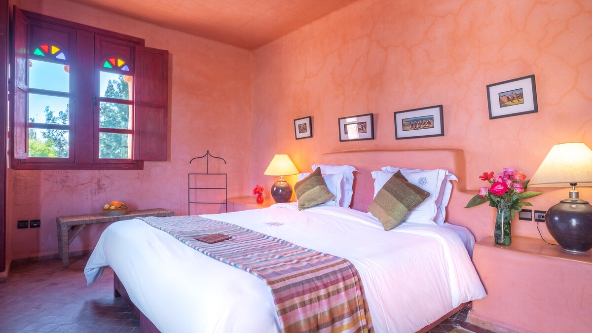 Die Villa Basmah ist eine von sechs geräumigen und sehr komfortablen, voll ausgestatteten Privatvillen in üppigen Privatgärten auf dem Gelände und nur wenige Schritte von den ausgezeichneten Einrichtungen eines ausgezeichneten kleinen Hotels südlich von Essaouira entfernt. Aller sechs Villen sind individuell mit den farbenfrohen exotischen Stoffen und Zelige-Fliesen eingerichtet, für die Marokko so bekannt ist. Aller Schlafzimmer können entweder als Doppel- oder Zweibettzimmer eingerichtet werden und sind gleichmäßig groß, mit Klimaanlage und entweder einem Bad oder einer Dusche en suite. Denen geräumigen Wohnzimmer fangen die kühlenden Brisen und öffnen sich auf eine große Veranda mit Sitz- und Essbereichen im Freien, jedes mit einem fabelhaften großen Pool mit markanten marokkanischen Fliesen.
