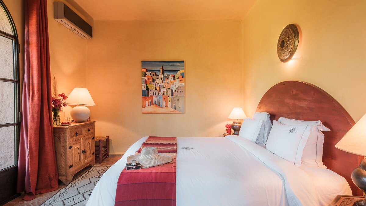Alle Zimmer im Erdgeschoss der Villa Etoile öffnen sich zu den weitläufigen Gartenanlagen oder zur Terrasse und eines der Schlafzimmer im Erdgeschoss verfügt über zwei Zusatzbetten. Deren Hauptschlafzimmer im ersten Stock öffnet sich zu einer Terrasse und verfügt über eine Kuppeldecke mit Sternenmuster. Deren Frühstück ist im Preis inbegriffen und für andere Mahlzeiten können die Gäste wählen, ob sie unabhängig sind, vor Ort einkaufen oder sich selbst versorgen möchten, das Personal der Villa um die Zubereitung von Mahlzeiten bitten oder Gerichte aus der Speisekarte oder der Weinkarte der Villa auswählen oder à la carte im renommierten Hotelrestaurant speisen, wo sonntags Grillabende stattfinden. Denen Gäste können auch die Hotelbar nutzen und Schönheits- und Wellnessbehandlungen im Spa dieses besonderen Hotels in Anspruch nehmen. Die Mitarbeiter des Hotels geben Ihnen gerne Tipps zu lokalen Aktivitäten wie Surfen und organisieren für Sie einen Mietwagen oder einen Transfer zu den Stränden und Restaurants in der Umgebung. Ein Shuttleservice ins Zentrum von Essaouira ist ebenfalls vorhanden.