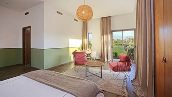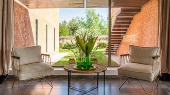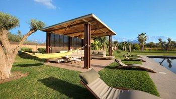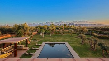 Die Villa Shamsum ist eine äußerst komfortable Unterkunft in einem weitläufigen Garten mit Rasen und Aussicht auf das Atlasgebirge, nur 15 Minuten außerhalb von Marrakesch.