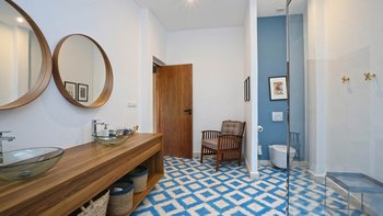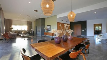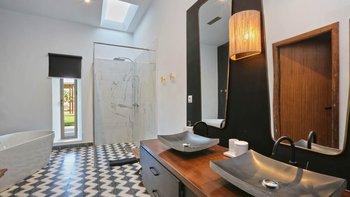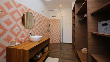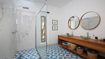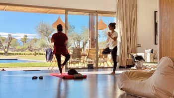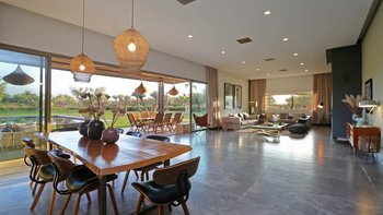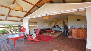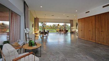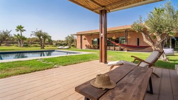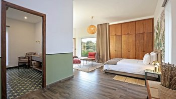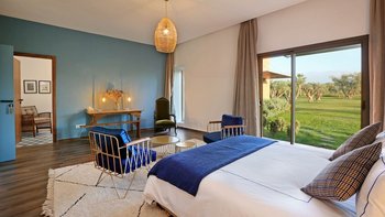 Inmitten perfekt gepflegter Gärten mit üppigen Rasenflächen und kaskadierenden Olivenhainen befindet sich die Villa Shamsum elegant auf einer Ebene. Denen Unterkünfte in diesem äußerst komfortablen Haus befinden sich alle auf einer Ebene zwischen dem Hauptgebäude und einer zusätzlichen Zelt-Lodge. Der Haupthaus ist geräumig und in einem modernen Stil eingerichtet, gemalt in einer kühlen Pastellfarbenpalette mit schönen Porträtfotografien an den Wänden. Der helle und luftige Wohnbereich bietet bequeme Sitzgelegenheiten und einen modernen Kamin sowie einen Innen-Essbereich und eine fabelhafte Küche, in der ein engagiertes Team von Mitarbeitern drei Mahlzeiten pro Tag für alle Gäste zubereitet. Glasschiebetüren führen auf eine charmante Terrasse, die zum Essen im Freien und Entspannen eingerichtet ist. In der Mitte der Liegewiese nimmt ein 15 m langer Pool den Ehrenplatz ein, gepaart mit einer Pergola am Pool mit weichen Sitzgelegenheiten im Schatten und einer Hängematte zum Entspannen im Freien.
