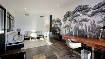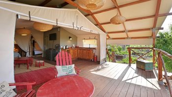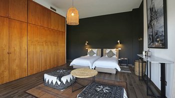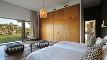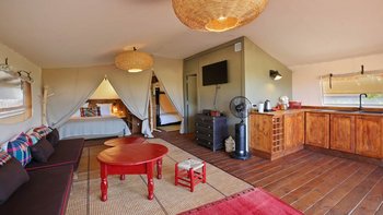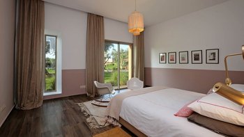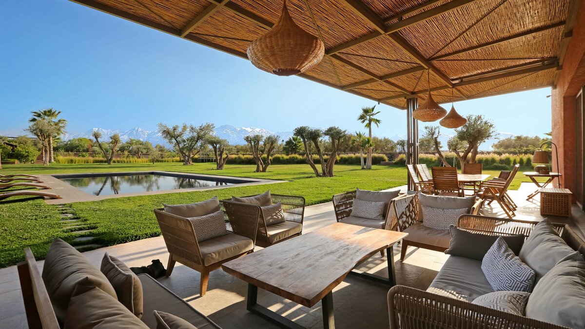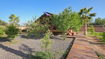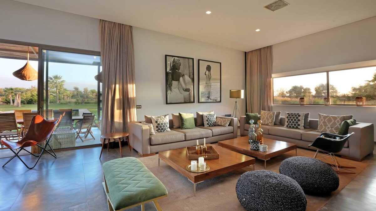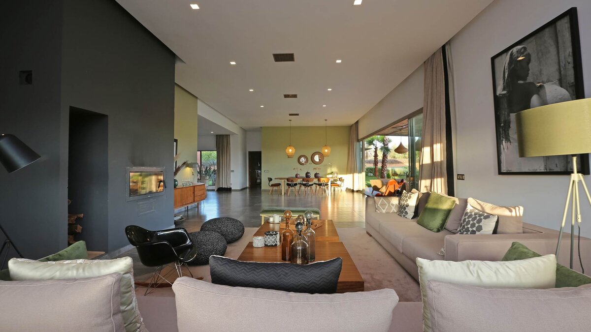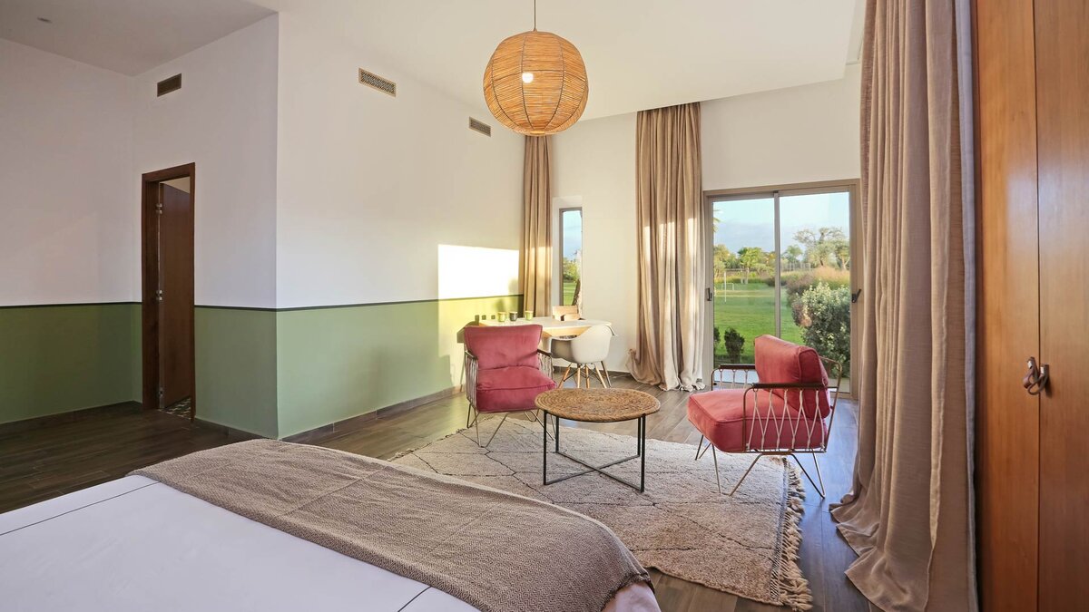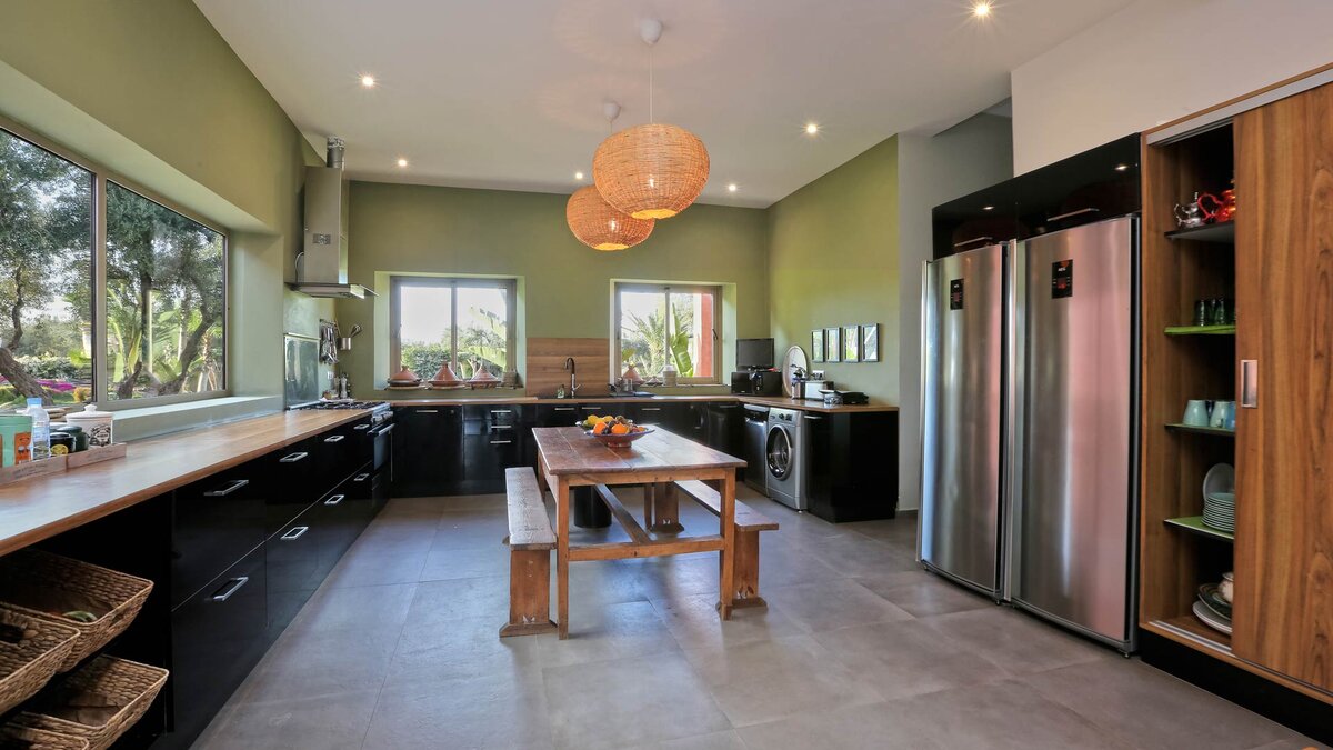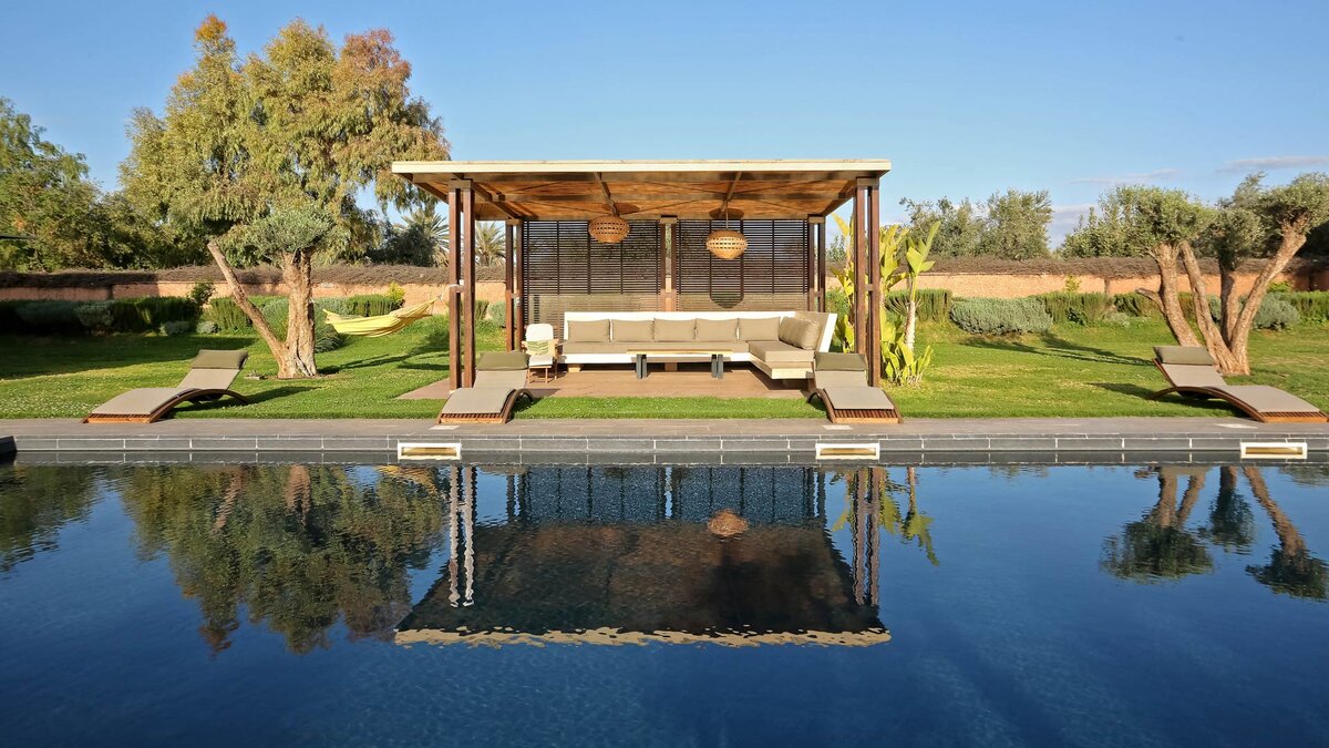 Im Haupthaus gibt es vier geräumige und schön eingerichtete Schlafzimmer, darunter die Master-Suite mit freistehender Badewanne; Die Canvas-Lodge bietet weitere Unterkünfte für vier Personen, darunter ein Schlafzimmer mit Doppelbett und ein Schlafzimmer mit Etagenbett, das ideal für Kinder ist. Der Canvas-Lodge, die sich in der südöstlichen Ecke des Geländes befindet, ist ein einzigartiges Angebot, das es den Gästen ermöglicht, in die Natur einzutauchen. Auf dem Gelände gibt es einen Sand-Boule-Platz, Tischtennis und einen Kinoraum, während die ausgezeichneten Restaurants und Einkaufsmöglichkeiten von Marrakesch nur 15 Minuten entfernt sind.