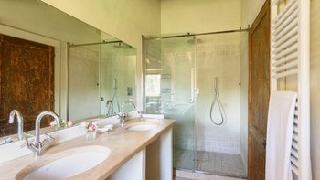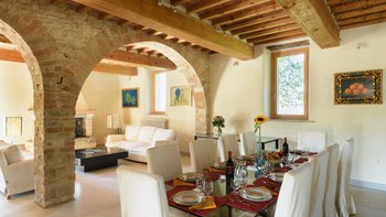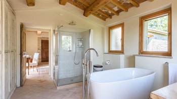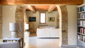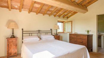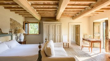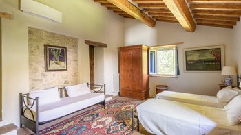 Casa Andrea ist ein robustes Steinhaus auf einem weitläufigen Grundstück, das den Charakter der alten Welt mit modernem Komfort verbindet und ein Gefühl der Abgeschiedenheit mit einfachem Zugang zu Annehmlichkeiten verbindet. Draußen, in einem etwa Hektar großen Garten mit Rasen, wird ein attraktiver Pool von einem Felsenwasserfall gespritzt, ein Volleyballnetz und ein Kinderfußballtor laden zum Spielen im Freien ein, und ein Tennisplatz wird mit der Schwestervilla Ceccomoro geteilt, die ebenfalls von CV Villas betrieben wird. Im Inneren der Villa befinden sich helle und luftige Zimmer, die mit einem modernen Twist auf rustikale Einfachheit gestaltet sind. Freiliegende Steinwände, Terrakotta-Fliesen und stark gebogene Balkendecken umrahmen faszinierende Kunstwerke und stilvolle Möbel, und riesige Steinbögen bilden die Trennlinien zwischen den offenen Ess- und Wohnzimmern. Ideal für Familien oder Gruppen von Freunden, gibt es einen zusätzlichen großen Fernsehraum und flexible Unterkunft umfasst zwei Schlafzimmer, die als Doppel- oder Einzelbetten zusammengestellt werden können, und zwei zusätzliche Tagesbetten, die für Kinder geeignet sind.