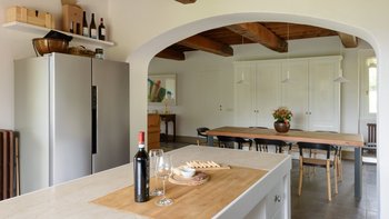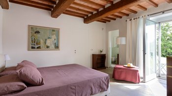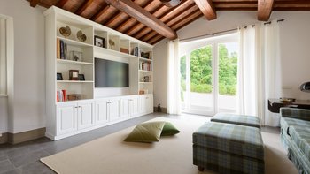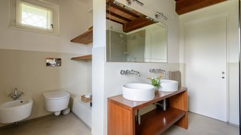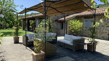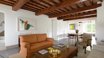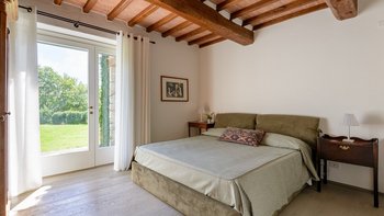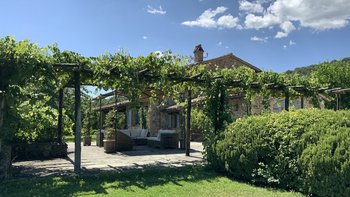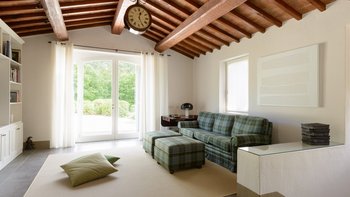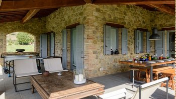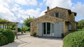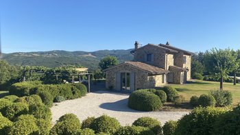 Ein perfektes Paradoxon eines Hauses, diese Familienvilla ist sowohl stilvoll und auch ungezwungen, sehr privat und dennoch in unmittelbarer Nähe der wunderschönen Stadt Todi, und ziemlich erwachsen, aber mit einem zwei Hektar großen Grundstück, auf dem die Kinder herumtoben können. Deren kürzlich renovierte Villa ist durchgehend mit müheloser Eleganz und wichtigen zeitgenössischen Kunstwerken eingerichtet. Ein luftiger offener OFFENER GRUNDRISS befindet sich im Erdgeschoss, die Küche mit angrenzendem Essbereich und eleganter Sitzecke. Ein Fernsehraum in warmen Farben vervollständigt das Erdgeschoss. Deren gut ausgestattete Küche verfügt über eine Kochinsel und viel Platz für die Zubereitung, ein Kochservice könnte ein zusätzlicher Genuss sein. Diese öffnen sich auf eine große überdachte Terrasse und bilden stilvolle Ess- und Wohnbereiche im Freien mit Blick auf die atemberaubende Aussicht. Individuell eingerichtet, befindet sich im ersten Stock ein Hauptschlafzimmer, und es gibt drei Zimmer mit Bad auf der unteren Ebene. Und direkt unterhalb des Hauses, in sehr großen Rasenflächen, wird der großzügige Pool durch zwei Pavillons für Schatten verbunden. Dessen effiziente Haushälterin kocht auch gerne für die Gäste. Mittelalterliche Todis Geschäfte und Restaurants sind nur 9 km von der Villa entfernt, Perugia und Assisi sind beide innerhalb von 50 km und es gibt einen kleinen Laden nur 3 km entfernt. EWdas ad