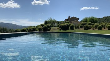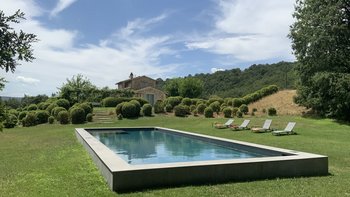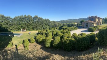 Mit weitläufigen Gärten und einer herrlichen Aussicht liegt diese elegante Luxusvilla in Umbrien friedlich auf ihrem Hügel, aber in der Nähe eines Festmahls an Sightseeing.