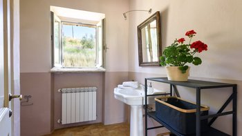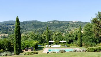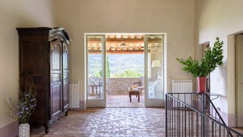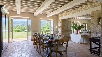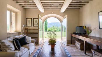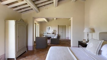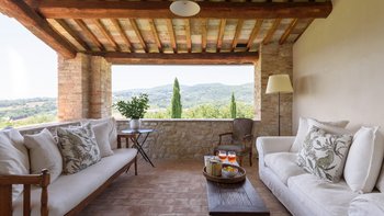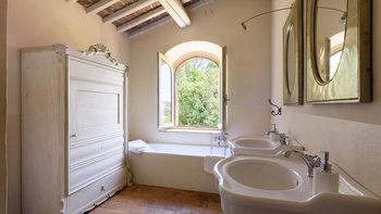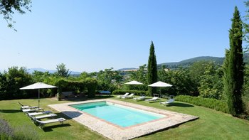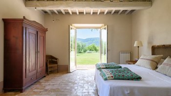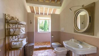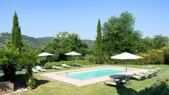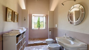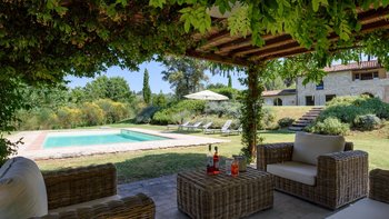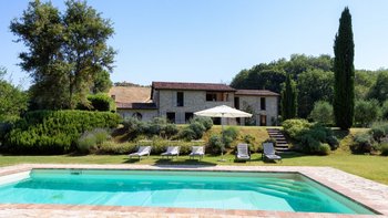 Ripa Bianca liegt auf einem sonnigen Hügel im Süden Umbriens und ist ein herrlich geräumiges Haus mit einer entspannten Atmosphäre wie zu Hause. Bei Renovierungsarbeiten wurden traditionelle Materialien mit modernem Komfort kombiniert und Antiquitäten und Kunstwerke mit einer beruhigenden Farbpalette ergänzt. Im Erdgeschoss befindet sich ein elegantes, aber ungezwungenes Wohnzimmer mit großen Sofas und Kissenbeuteln, freiliegenden Steinwänden und Dachsparren. Es öffnet sich in ein Esszimmer im Landhausstil und eine gut ausgestattete Küche, in der viel Arbeitsraum mit modernen Geräten kombiniert wird. Es gibt zwei Schlafzimmer auf dieser Etage und drei im Obergeschoss, darunter eine bezaubernde Master-Suite mit Kingsize-Bett. Alle Schlafzimmer haben ein eigenes Bad (alle mit Dusche und zwei mit Badewanne) und drei können mit Super-Kingsize- oder zwei Einzelbetten ausgestattet werden, eines als Einzelbetten und das Hauptschlafzimmer als Super-Kingsize-Bett. Während eine obere Loggia mit weichen Sitzgelegenheiten das Gute aus dem herrlichen Panoramablick macht, führen im Erdgeschoss mehrere Doppeltüren zu einer großen Rasenfläche und einer schattigen Pergola und einer zweiten Pergola mit bequemen Stühlen und einem Sofa, die neben dem privaten Privater Pool An Pool gibt es auch eine Pergola mit einer Bar für faule Sommercocktails und einen Esstisch, der sich perfekt für ein Mittagessen im Freien eignet. Die Villa ist 3 km von ein paar sehr guten lokalen Restaurants und 5 km von den Geschäften in Narni Scalo, mit Todi, Orvieto, Spoleto und Perugia alle für einen Tagesausflug leicht zu erreichen. Es gibt auch einen Bahnhof in Narni Scalo und daher ist Rom für einen Tagesausflug oder einen Abend leicht erreichbar.