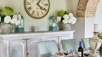 Diese Villa kombiniert klassische italienische und moderne Stile und wurde mit Möbeln von lokalen Handwerkern eingerichtet. Deren Erdgeschoss besteht aus einer Eingangshalle mit einem rustikalen Pizzaofen, einer hochmodernen OFFENER GRUNDRISS italienischen Valcucina-Küche, die mit dem Essbereich verbunden ist, und einem großzügigen Wohnzimmer mit Kamin. Deren erstes der vier Schlafzimmer im Obergeschoss kann als Super-Kingsize-Doppelzimmer oder als Zweibettzimmer eingerichtet werden und verfügt über ein eigenes Duschbad. Zwei weitere Doppelschlafzimmer mit Dusche und ein weiteres Doppelschlafzimmer mit eigenem Bad vervollständigen den ersten Stock. Weitere Merkmale dieser Villa sind das hochmoderne Fitnessstudio im Untergeschoss mit Technogym-Geräten und Hanteln, Bank- und Yogamattenund Das Nebengebäude mit einem zusätzlichen Schlafzimmer mit Doppelbett und eigenem Bad mit Dusche und der Hauptunterhaltungsraum mit einem großen Smart-TV mit Surround-Sound-System.