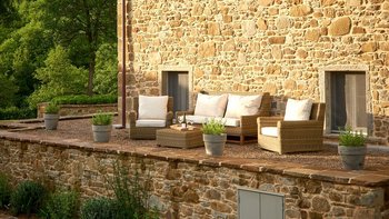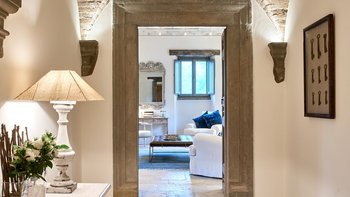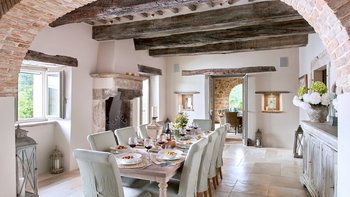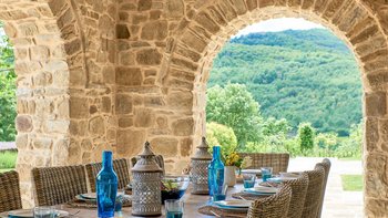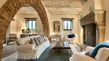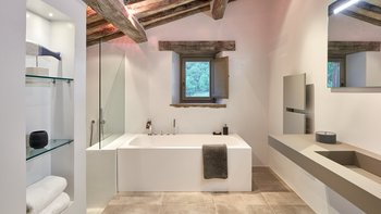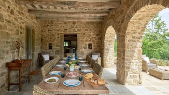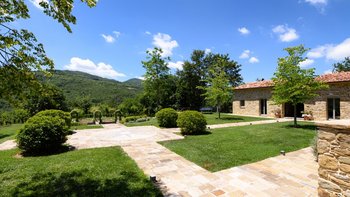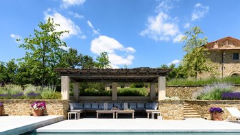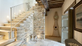 Dieses traditionelle Steinhaus wurde elegant renoviert, um seinen historischen Charme mit modernem Luxus zu verstärken. Es befindet sich in einer Landschaft, die sich seit Jahrhunderten nicht verändert hat. Denen weitläufigen Gärten, die durch gepflasterte Wege verbunden sind, führen zu einem herrlichen beheizten Pool, von dem aus man die atemberaubende Umgebung beobachten kann. Ein Poolhaus und ein überdachter Essbereich im Freien mit gepolsterten Sitzgelegenheiten und Außenlautsprechern runden die Außenumgebung der Villa ab.