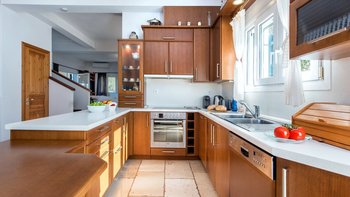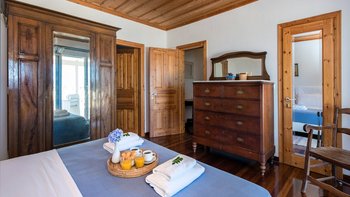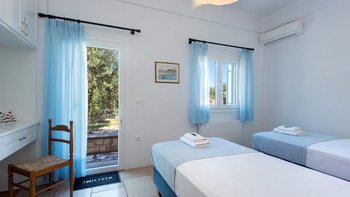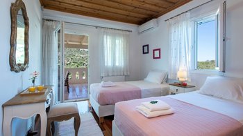 Ganz im Einklang mit dem entspannten Tempo der Insel, vereint diese geräumige Villa moderne Einrichtungen mit einer angenehmen Mischung aus modernen und traditionellen Möbeln. Fahnensteinböden, kreideweißes Dekor und erdfarbene Möbel erstrecken sich über das gesamte Erdgeschoss, wo eine offene Küche/Esszimmer Türen zum gestaffelten Garten hat; ein geräumiges Wohnzimmer mit Kamin und Großbild-Sat-TV, das sich auf eine überdachte Terrasse öffnet; und es gibt ein Zweibettzimmer mit eigenem Bad mit Dusche. Denen anderen drei Schlafzimmern teilen sich die obere Etage mit polierten Holzfußböden, Fachwerkdecken und Zugang zu einem Balkon. Und es ist in allen vier Gästezimmern und im Wohnzimmer eine Klimaanlage installiert. Für das Leben im Freien sorgen möblierte Veranden zum Essen im Freien und Entspannen, ein eingebauter Grill für das Mittagessen in der Sonne, Liegestühle am privaten Pool der Villa und Blick von den Balkonen im Obergeschoss über ein Meer aus silbernen Olivenbäumen bis hin zum Blau der dahinter liegenden Bucht. Iviscus ist auch gut für Urlaubsnotwendigkeiten positioniert, etwa 400 M vom Yanna Beach und 200 m von Gaios entfernt, wo sich die Restaurants rund um den Hauptplatz in bester Lage befinden, um Leute zu beobachten und Jachten zu entdecken.
