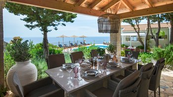 Villa Ava ist eine Villa mit drei Schlafzimmern an der ruhigen Südwestküste von Paxos, Griechenland, mit einer unglaublichen Lage, einer wunderschön eingerichteten Terrasse und erhöhtem Meerblick.
