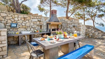 Mit spektakulärem Blick auf das Ionische Meer von einem Aussichtspunkt an der Westküste, ist die Villa Glaros eine abgeschiedene und moderne Villa, ideal für Gruppen von Freunden oder Paaren und in der Nähe der charmanten Gaios.