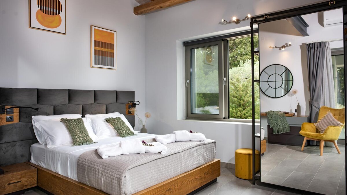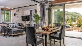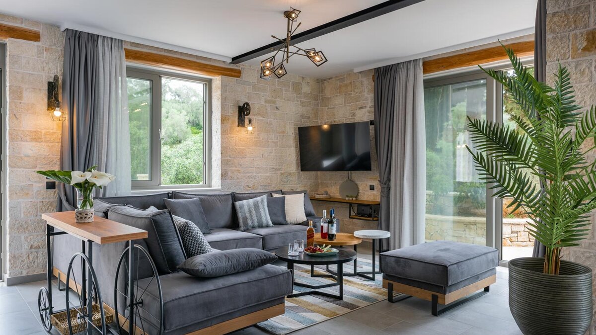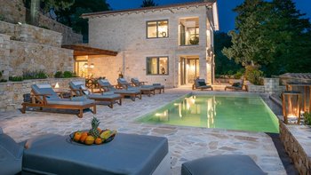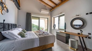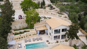 Die Villa Petra ist ein exquisiter, 120 Quadratmeter großer Rückzugsort im ruhigen Dorf Vlachopoulatika auf der Insel Paxos und verbindet mühelos moderne Eleganz mit traditioneller paxianischer Architektur.