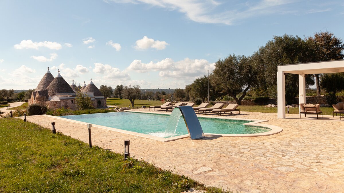 Die Villa liegt auf einem sanften Hügel inmitten von Olivenhainen und bietet einen weiten Blick auf die umliegende Landschaft. Jeder Trullo verfügt über einen eigenen Salzwasserpool, einen mit Infinity-Rand und Hydromassagebereich, neben Terrassen, schattigen Essbereichen und professionellen Grills für entspanntes Leben im Freien.
