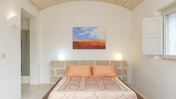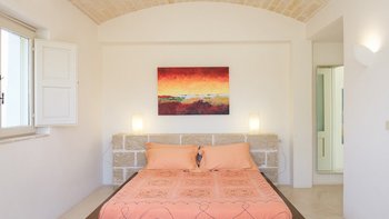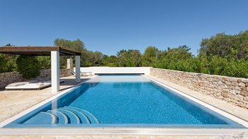 Villa Zenzero ist eine wunderschöne Villa im schönen Apulien, mit modernen und hellen Wohnräumen und einem beheizbaren, geschlossenen Pool. Eine von Lavendel und Rosmarin gesäumte Auffahrt führt hinauf zur Vorderseite der Villa, dem Haupteingang, der sanft unter kletternden Glyzinien beschattet wird. Im Inneren entdecken die Gäste traditionelle Steindecken und Torbögen, wobei jedes Zimmer in einem modernen und hellen Stil eingerichtet ist. Der offene Grundriss der Küche, der Ess- und Sitzbereich im Innenbereich ist geräumig und komplett mit einem schönen Glastisch mit Stühlen. Direkt neben der Küche bietet eine gemütliche Lobby mit Sofas und einem Fernseher den perfekten Ort, um sich am Abend zu entspannen. Am Ende des Wohnzimmers der Villa befinden sich zwei Doppelschlafzimmer (Super-Kingsize) mit jeweils eigenem Duschbad und Zugang zum Garten. Weitere Schlafzimmer befinden sich am anderen Ende der Villa, darunter drei Zweibettzimmer mit viel Platz. Diese verfügen über ein Gemeinschaftsbad mit Dusche, zwei Waschbecken und freistehender Badewanne.