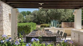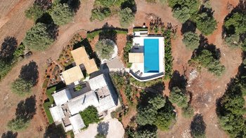 Die Villa liegt bequem inmitten von fünf Hektar Olivenhainen und ist von traditionellen Steinmauern umgeben. Hochgezogene Blumenbeete beherbergen einen kleinen Zitronenbaum, Diascia, Plumbago und Schlepppflanzen. Der Außenküche und die Sitzbereiche umfassen einen großen Esstisch und einen Bereich für die Zubereitung von Speisen mit gepolsterten Sitzen, die den perfekten Platz bieten, um den Sonnenuntergang mit einem Drink in der Hand zu beobachten. Eine Bar und ein Lebensmittelgeschäft sind nur 2,5 km zu Fuß oder mit dem Auto entfernt, während eine gute Auswahl an Supermärkten, Geschäften, Restaurants und Annehmlichkeiten auch in 7 km Entfernung in Cisternino oder 9 km entfernt in Ostuni zu finden sind. Zu den lokalen Sehenswürdigkeiten gehören Ceglie Messapica, eine bezaubernde Stadt im Herzen des Itria-Tals, und die faszinierende Martina Franca. Der Bahnhof Ostuni ist nur 11 km entfernt, während sich die Flughäfen Brindisi und Bari in unmittelbarer Nähe der Villa befinden.