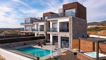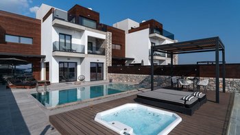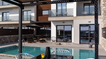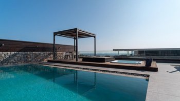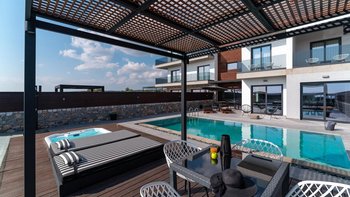 Dieses dreistöckige Anwesen befindet sich auf Rhodos und bietet von seiner unvergleichlichen Lage aus einen herrlichen Blick auf die Küste. Mit ihren großen raumhohen Fenstern bietet die Villa einen uneingeschränkten Blick auf den Pool, den Jacuzzi und die Umgebung. Im Erdgeschoss stehen Ihnen eine große, voll ausgestattete Küche sowie ein elegantes Esszimmer für bis zu acht Personen zur Verfügung. Im ersten Stock befinden sich zwei individuell gestaltete Schlafzimmer mit einem großen Badezimmer mit einer großen ebenerdigen Dusche. Im zweiten Stock befindet sich die romantische Paar-Suite mit großen Fenstern, die einen Blick auf das Meer und die Landschaft bieten. Ein modernes und minimalistisches Bad begleitet dies neben einer privaten Terrasse zum Sonnenbaden.