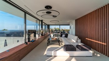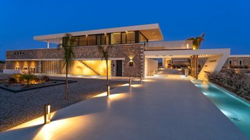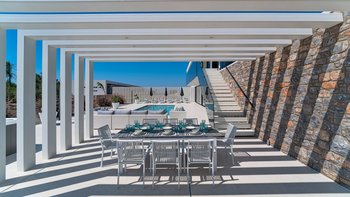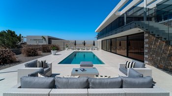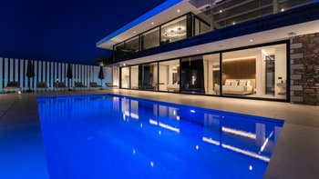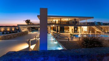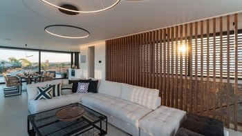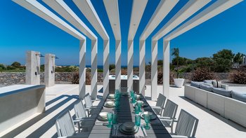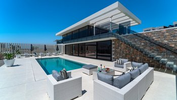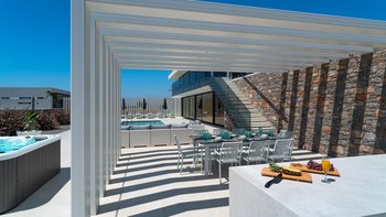 Diese Villa verfügt über zwei Terrassen, eine auf beiden Seiten. Auf der einen Seite können die Gäste am Poolbereich entspannen, mit einem beheizten Whirlpool und einem Essbereich mit einem Doppel-Insel-Grillplatz. Auf der anderen Seite befindet sich ein großer Sitzbereich mit einem externen Kamin. Im Untergeschoss befindet sich eine separate, vollwertige Küche mit individueller Dusche und Bad, ideal für die Vorbereitung von Partys und externen Catering-Services.