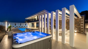 Dieses außergewöhnliche Anwesen auf Rhodos verfügt über hervorragende Einrichtungen, einen verträumten Infinity-Pool, ein atemberaubendes Interieur und einen privaten Jacuzzi.