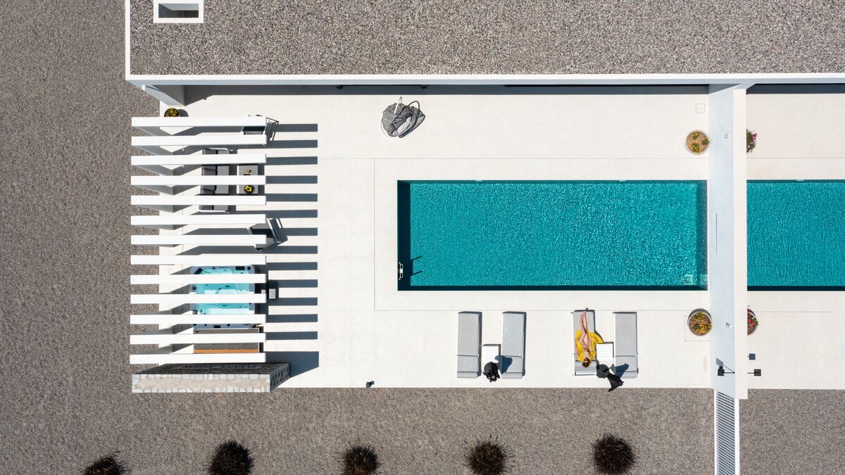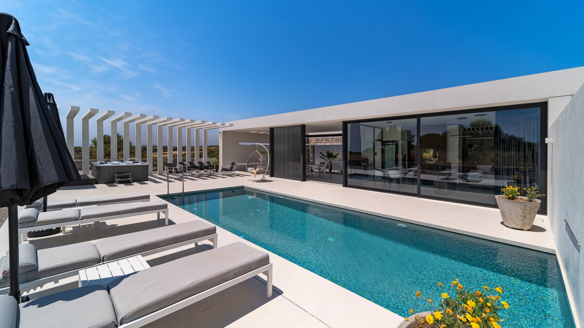 Im Außenbereich befinden sich ein erfrischendes PRIVATER POOL, ein Speisesaal im Freien, ein Loungebereich und ein privater beheizter Jacuzzi, ideal für einen Drink unter dem Sternenhimmel. Deren Unterkunft ist nur eine kurze Autofahrt oder zu Fuß von Strandbars, Tavernen und Geschäften entfernt.