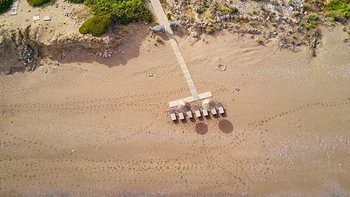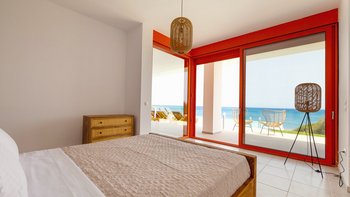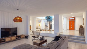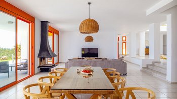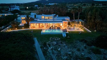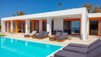 Im Außenbereich befindet sich ein großer PRIVATER POOL, der den Mittelpunkt der Terrasse bildet. Der weitläufige Außenbereich ist ideal für große Gruppen und Großfamilien, um lange, gemütliche Mittagessen zu genießen. Nur wenige Schritte entfernt befindet sich ein Privatstrand mit goldenem Sand und kristallklarem Wasser, der für einen wirklich ruhigen Inselurlaub sorgt.