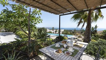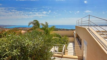 Eine gut ausgestattete moderne Villa mit einem atemberaubenden Poolbereich mit Blick auf das Meer. Dieser nach Süden ausgerichtete Villa ist sehr großzügig für eine kleinere Gruppe und liegt in der Nähe des Strandes und der historischen Stadt Sciacca.