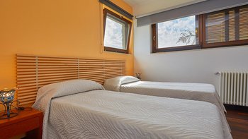 • Zweibett-Schlafzimmer (kann als Doppelbett zusammengestellt werden)
