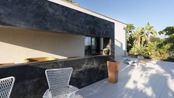 • Von dieser Außenterrasse führen weitere Stufen hinauf zur Dachterrasse