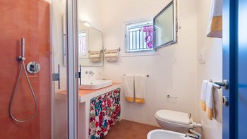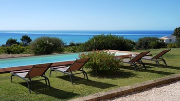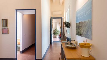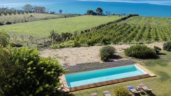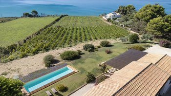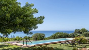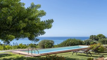 Treten Sie nach draußen, um bezaubernde Außenbereiche zu entdecken. Eine schattige Terrasse, die für Mahlzeiten im Freien eingerichtet ist, blickt auf den üppigen Garten mit einer lebendigen mediterranen Flora. Von hier aus haben die Gäste einen ungestörten Blick auf den Weinberg, der sich bis zum glitzernden Meer erstreckt. Der Privater Pool bietet einen erfrischenden Rückzugsort an warmen Tagen, während die Grillmöglichkeiten zu unvergesslichen Mahlzeiten im Freien einladen. Ein kurzer Spaziergang durch den Garten führt zu einem privaten Weg, der ca. 200 m durch die Landschaft zu einem unberührten Sandstrand führt; ideal zum Entspannen auch in den Hochsommermonaten.