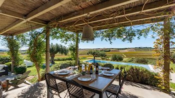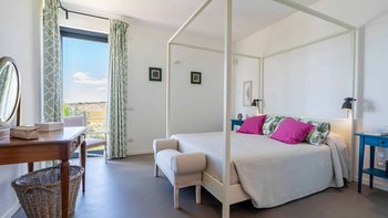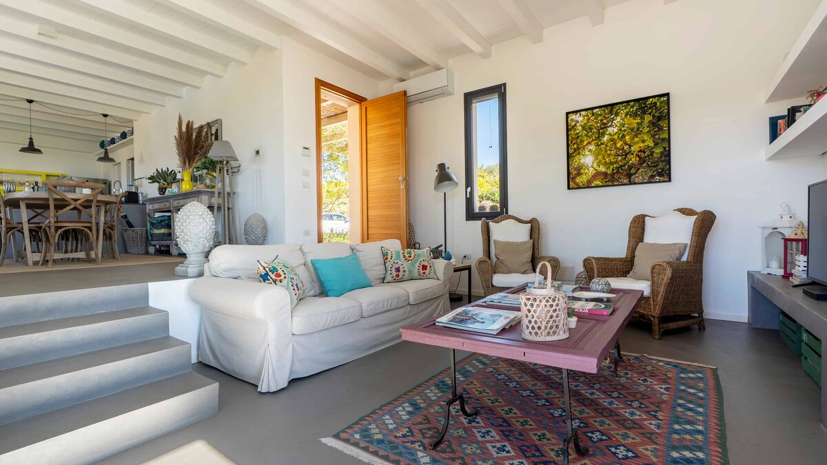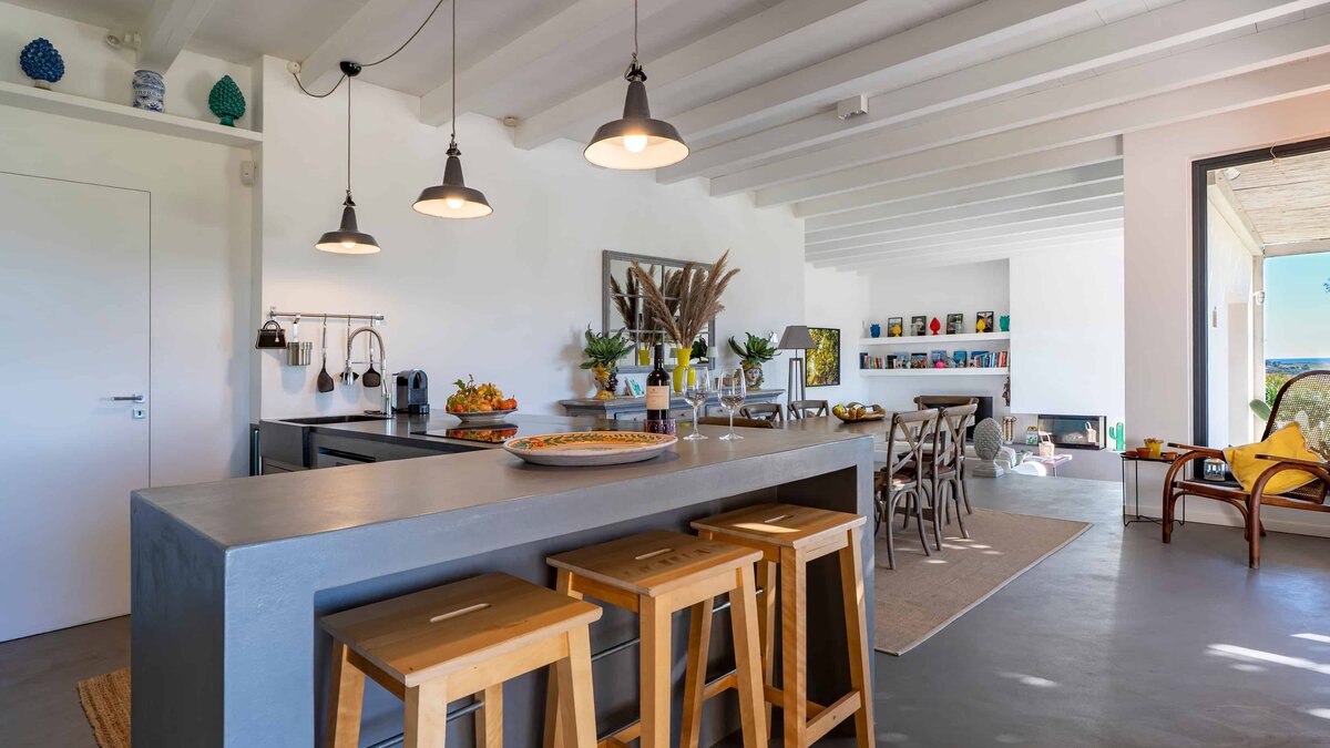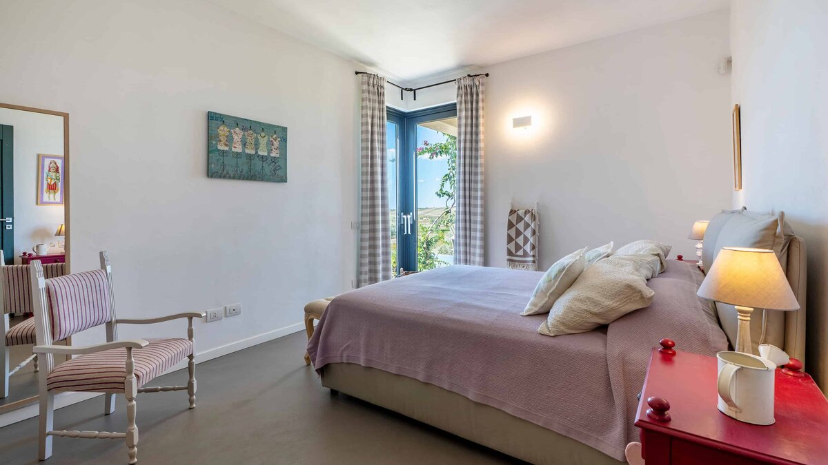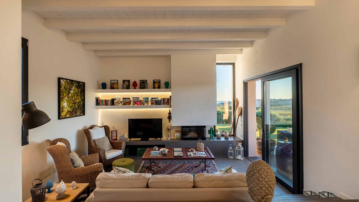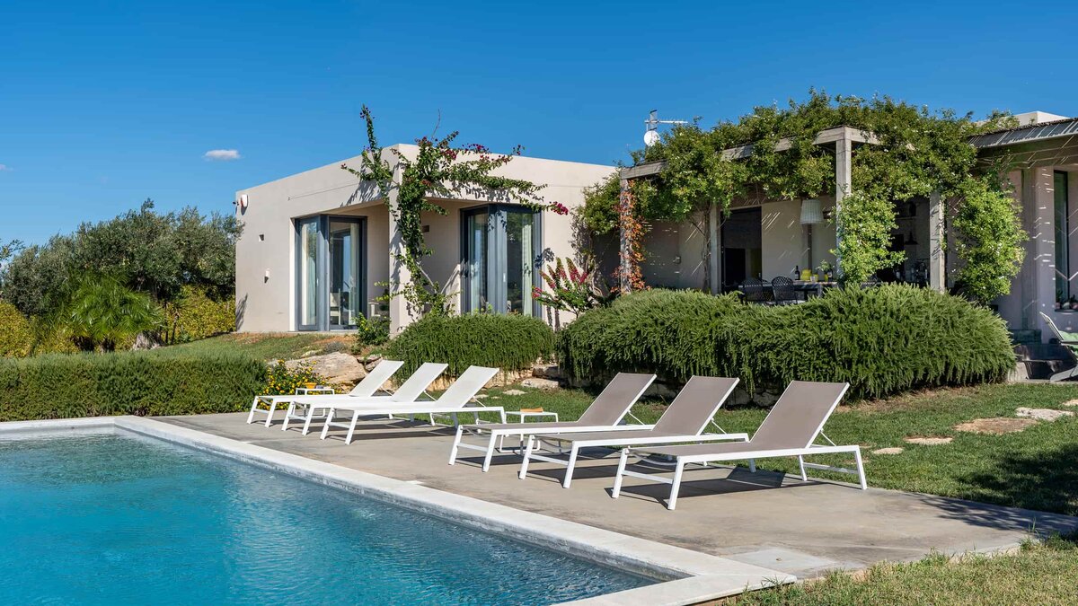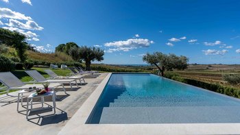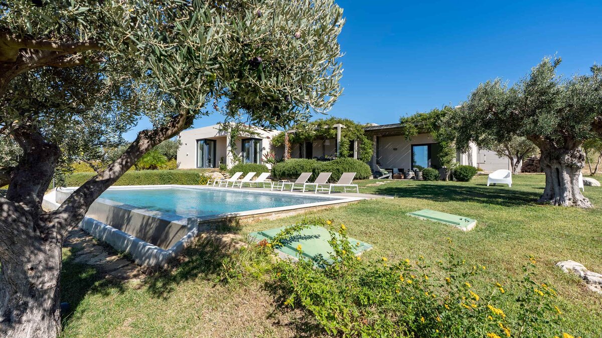 Umgeben von langen Reihen von Weinbergen und Olivenbäumen genießt die Villa La Solette eine unverwechselbare Lage in der Landschaft von Menfi und bietet eine raffinierte Mischung aus modernem Komfort und klassischem mediterranem Stil.