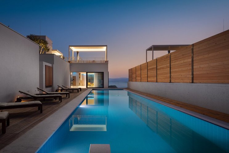 Eingebettet in den Hang über dem Jakirusa Strand, ist die Villa Kalina ein erstaunliches modernes Anwesen, das perfekt für große Gruppen von Freunden ist, die zusammen Urlaub machen.