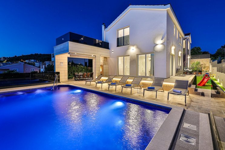 Die Villa Paragon befindet sich im charmanten Dorf Seget Donji und ist ein Rückzugsort mit vier Schlafzimmern am Wasser in der Nähe von Split, Kroatien, und verspricht alle Vorzüge einer privaten Oase.