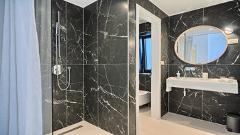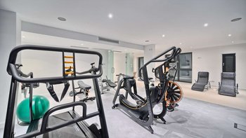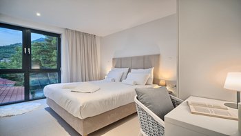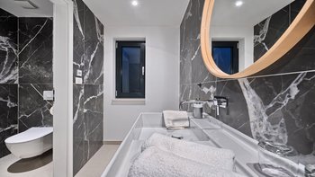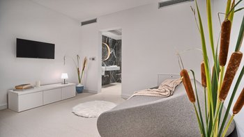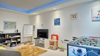 Die Unterkunft Split befindet sich auf vier Etagen, was auch für große Gruppen ideal ist, um ihren eigenen Raum zu genießen. Im Erdgeschoss befindet sich ein modernes Wohnzimmer, das durch Glasschiebetüren auf die Terrasse hinausgeht und mit zwei nebeneinander liegenden Esstischen im Freien ausgestattet ist. Deren erste und dritte Etage sind den Schlafbereichen gewidmet – alle Schlafzimmer sind Doppelschlafzimmer mit eigenem Bad oder Dusche. Im zweiten Stock befindet sich ein Wellnessbereich mit Sauna, Jacuzzi und einem voll ausgestatteten Fitnessraum. Zu den weiteren Unterhaltungsmöglichkeiten im Innenbereich gehört ein Spielzimmer mit Tischfußball.