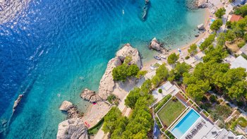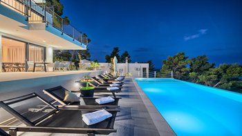 Dieses herrliche Anwesen ist unser größtes in ganz Kroatien und bietet Platz für bis zu 18 Gäste in 9 schönen Schlafzimmern. Der epische Infinity-Pool blickt auf das Meer und ist mit genügend Liegen gesäumt, damit die ganze Gruppe sich sonnen und Kontakte knüpfen kann, während sie den traumhaften Meerblick bewundern.