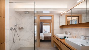 Die luxuriöse Villa Moda zeichnet sich durch ihre makellose Meereslandschaft, ihren eleganten Stil, ihr zeitgemäßes Design und ihren unvergleichlichen Komfort aus. All dies befindet sich vor der faszinierenden Kulisse der Adria in einer abgeschiedenen und dennoch günstigen Lage. Im ersten Stock finden die Gäste einen wunderbaren Wellnessbereich mit Hydromassage-Jacuzzi, Fitnessraum, Hamam und finnischer Sauna. Steigen Sie auf das Laufband, fahren Sie auf dem Heimtrainer oder checken Sie in das Spa ein und gönnen Sie sich einen Tag der Entspannung. Im Obergeschoss befindet sich ein geräumiges und modernes Wohnzimmer mit herrlich raumhohen Fenstern, um die Aussicht optimal zu präsentieren. Dessen offene, voll ausgestattete Küche ist perfekt für Unterhaltung. Mit vier komfortablen und luftigen Schlafzimmern mit eigenem Bad können acht Gäste bequem untergebracht werden. Deren Villa verfügt auch über eine Garage im Erdgeschoss, die mit einem Aufzug in die zweite Etage verbunden ist. Deren Dachterrasse ist ein weiteres Highlight dieser Immobilie, der perfekte Ort, um einen Grill bei Sonnenuntergang zu genießen oder einfach nur die unglaubliche natürliche Schönheit Kroatiens zu genießen.