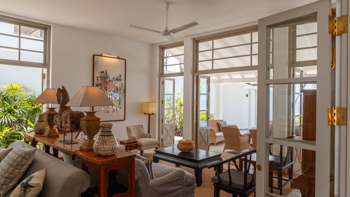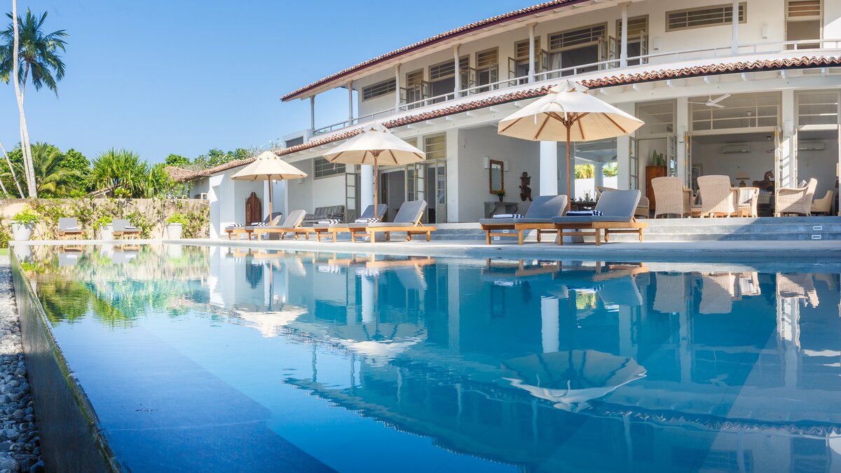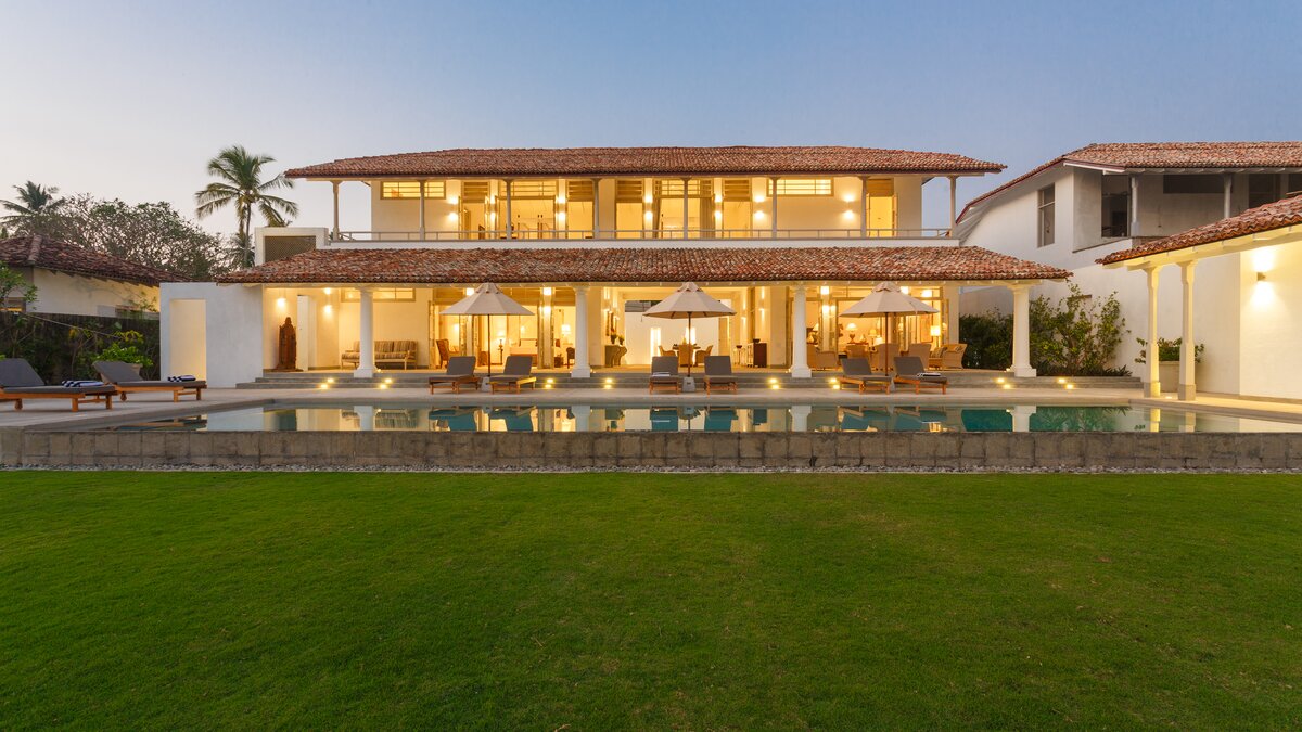 Diese elegante zweistöckige Villa befindet sich in idyllischer Strandlage, in der Nähe von Koggala im Süden Sri Lankas. Deren Villa ist um großzügige Gemeinschaftsräume mit einem begrünten Eingangshof, einem überdachten Open-Air-Essbereich und einem großen, komfortablen, klimatisierten Wohnzimmer herum angeordnet. Deren Raum zum Entspannen erstreckt sich auf die Terrasse, von der weitere bequeme Sitzgelegenheiten einen herrlichen Blick über den 15 m langen Pool in Richtung Indischer Ozean genießen. An Ende des hübschen tropischen Gartens befindet sich ein Tor, das zu einem wunderschönen Sandstrand führt.