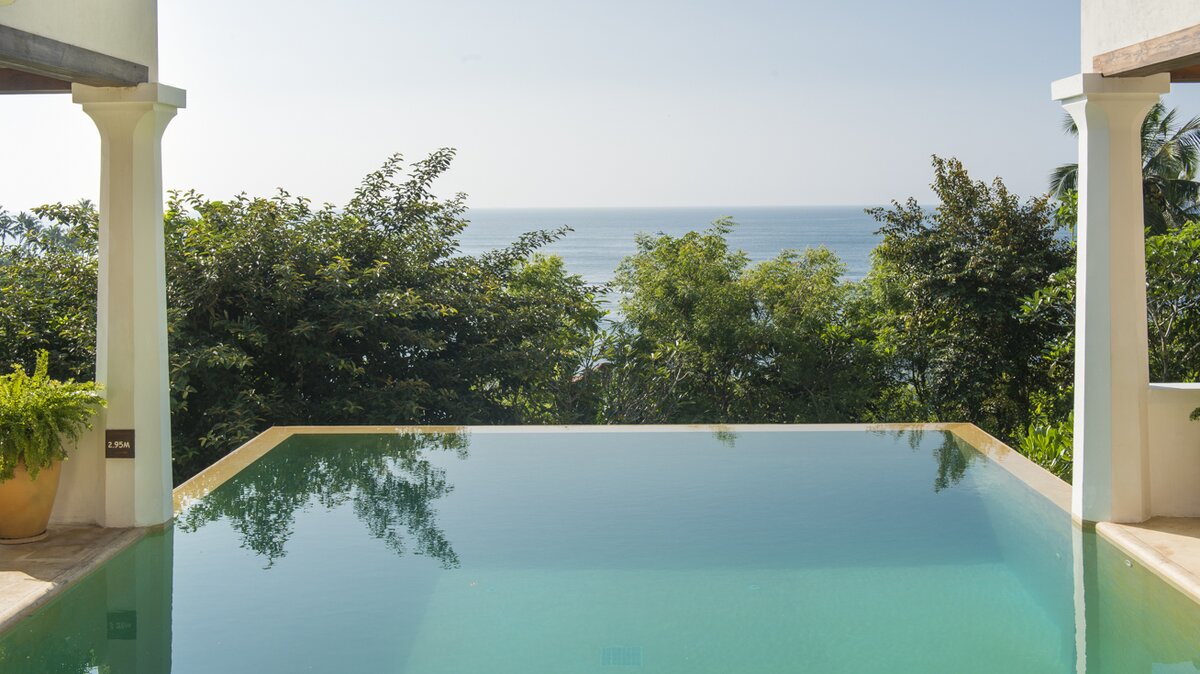 Draußen steht der majestätische Infinity-Pool im Mittelpunkt, der von anmutigen Säulen flankiert wird und von einem niedrigen, mit Kissen ausgekleideten Sitzbereich begrenzt wird. Deren Dachterrasse dient als luftiger Loungebereich, ideal für Yoga, Meditation oder einfach nur einen morgendlichen Kaffee mit Aussicht. Denen Gäste können köstliche Mahlzeiten, die vom Küchenchef der Villa zubereitet werden, im Gartenpavillon oder auf der Speiseterrasse unter dem Sternenhimmel genießen. Nur einen kurzen Spaziergang entfernt bietet der idyllische „Jungle Beach“ Möglichkeiten zum Schnorcheln, Surfen für Fortgeschrittene oder einfach zum Faulenzen am Sandstrand. Für begeisterte Entdecker organisiert der Concierge der Villa verschiedene Aktivitäten, von Walbeobachtungen über Safaris und Besichtigungen bis hin zu lokalen Sehenswürdigkeiten in Galle, Weligama oder noch weiter entfernt.