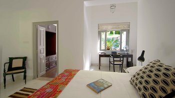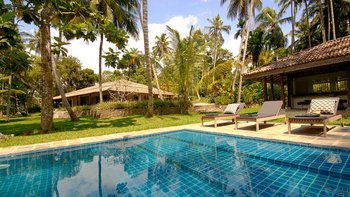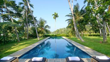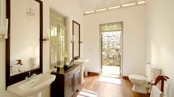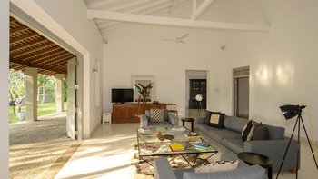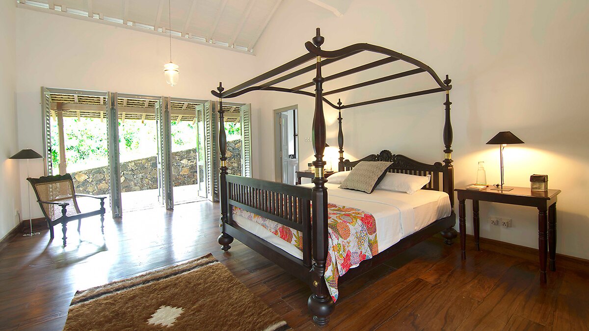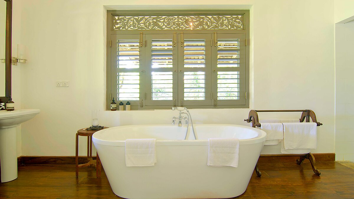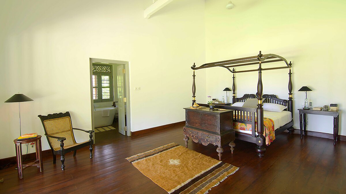 Das Elephant House liegt in absolut ruhiger Lage mit Blick auf die pulsierenden Reisfelder von Galle und ist eine verträumte Kombination aus modernem Design und optimalem Komfort. Seine Lage ist wahrlich stimmungsvoll im Herzen des südlichen Sri Lankas, aber nur eine kurze Fahrt von den nächsten Stränden entfernt. Des ersten Zimmer der Villa ist das stilvolle Wohnzimmer mit einem großen Sofa und Sesseln, mit einziehbaren Fensterläden, die vollständig geöffnet werden können, um das Breitbild-Panorama der umliegenden Reisfelder und eine willkommene kühlende Brise freizugeben. Durch die Mitte des Hauses verläuft ein eleganter Raum, der die Küche und den Innen-Essbereich beherbergt. Der Esstisch befindet sich auf der Reißeite des Hauses und ermöglicht ein stimmungsvolles Essen; auf der anderen Seite befindet sich die gut ausgestattete Küche. Vom Wohnzimmer aus führen die zwei Queen-Schlafzimmer mit Außenduschen; antike Feinschliffe wie Ventilatoren und Schreibmaschinen sorgen für eine gewisse Romantik. Es gibt zwei wunderschöne Master-Suiten mit vier Himmelbetten. Beiden Zimmer sind en suite – eines hat eine Badewanne, während das andere eine doppelte Außendusche hat.