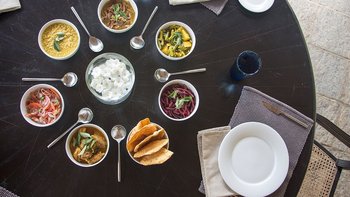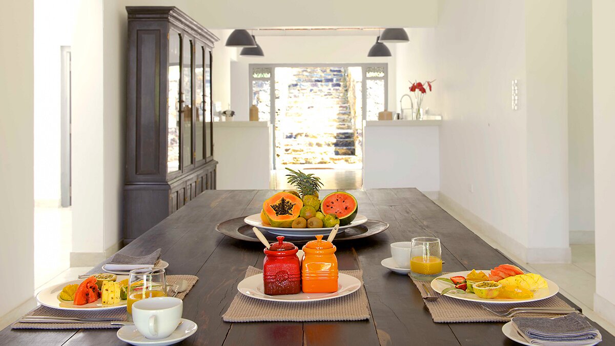 Die Speisekarte ist eine Auswahl an Gerichten, die der Küchenchef gerne zubereitet, aber wenn Sie besondere Wünsche haben, empfehlen wir den Gästen, diese mit ihm zu besprechen. Wenn Sie Ihren Rührei auf eine bestimmte Art und Weise oder Ihren Kaffee in einer bestimmten Stärke mögen, empfehlen wir Ihnen, Sunil in die Küche zu begleiten und ihm zu zeigen. Ebenso, wenn Sie irgendwelche Allergien oder besondere Abneigungen haben, lassen Sie es Sunil bitte wissen. Aller Mahlzeiten sind auf Bestellung erhältlich und die Speisekarte ist ein Leitfaden und nicht als eine feste Auswahl an Gerichten gedacht, also besprechen Sie Ihren Vorlieben und erkunden Sie die Umgebung. Bitte beachten Sie, dass die Küche so eingerichtet ist, wie Sie es in einem Haus tun würden, daher bitten wir Sie, die Mahlzeiten so auszuwählen, wie Sie es zu Hause tun würden, und nicht ein Restaurant. Sunil wird eine Barzahlung verlangen, um die Kosten für die Zutaten und den Transport zu decken, um sie zu bekommen, und er wird Quittungen und Konten auf Anfrage oder wenn weitere Mittel benötigt werden, zur Verfügung stellen.