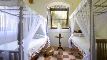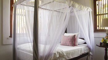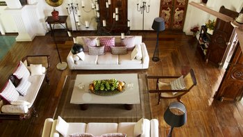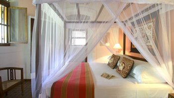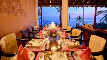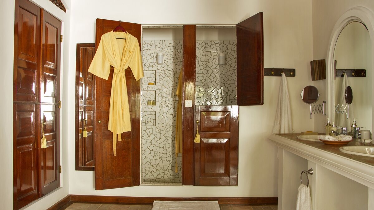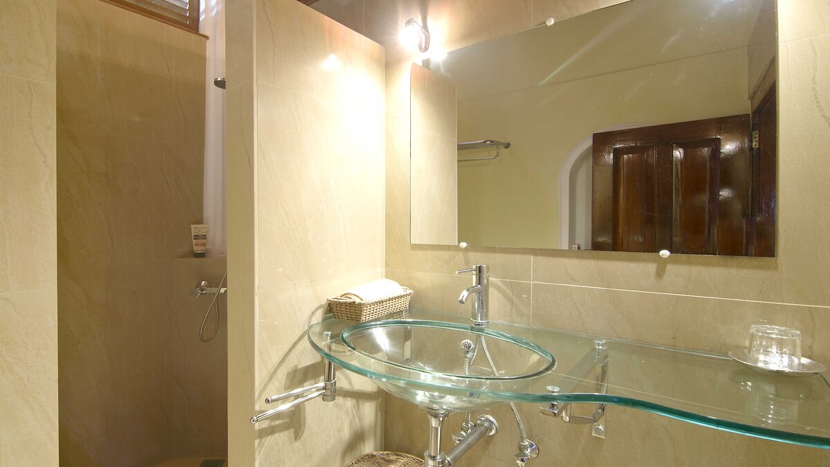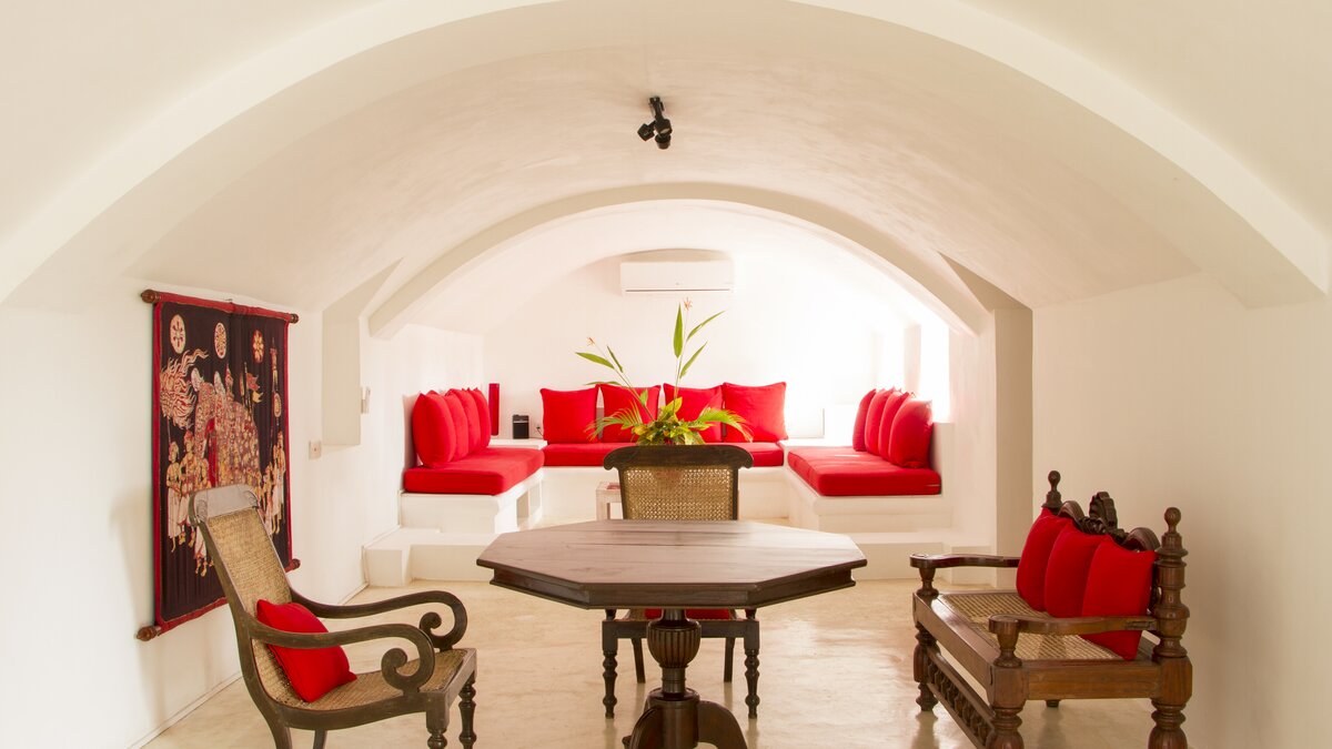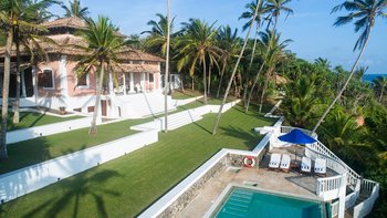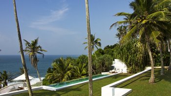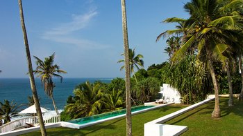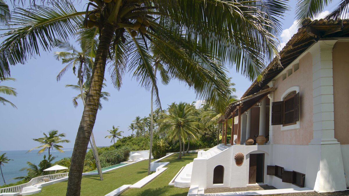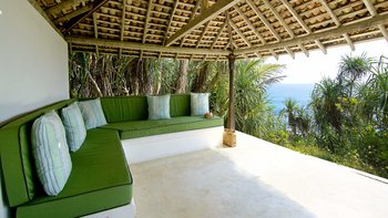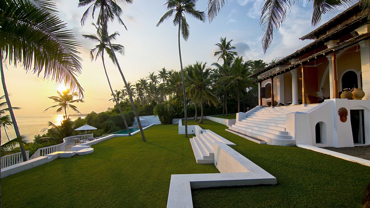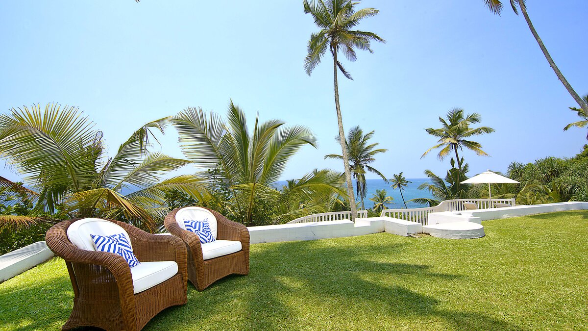 Palmyra liegt auf einer Klippe mit unglaublichem Blick auf das Meer und ist eine Geschichte wahrer Romantik. Ursprünglich als Geschenk eines Mannes an seine Frau erbaut, ist diese Villa einzigartig nach dem Konzept eines Schiffes gestaltet, mit Teakholzböden. Bei der Ankunft führt ein bezaubernder, von Frangipani gesäumter Steinweg durch tropische Flora und Fauna zu den großen Doppeltüren der Villa. Bei Betreten der Villa zeichnet sich das Hauptwohnzimmer durch vier große Bögen mit hohen Decken aus, die einen einzigartigen Raum mit antiken Möbeln, bequemen Sofas und einem großen eisernen Kronleuchter schaffen. Dieser erstreckt sich auf die große Veranda, die mit einem Esstisch und einem schönen Tagesbett ausgestattet ist und einen ungestörten Blick auf das Meer bietet. Die Terrassengärten rund um das Haus sind ebenfalls atemberaubend, und die vier Schlafzimmer teilen sich die obere Terrasse mit dem Wohnzimmer und der großen und großen Veranda; jedes der hellen und geräumigen Schlafzimmer ist wie eine Schiffskabine.
