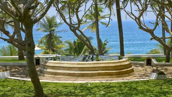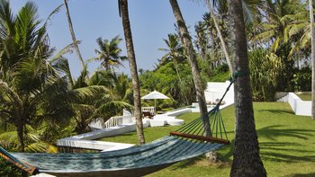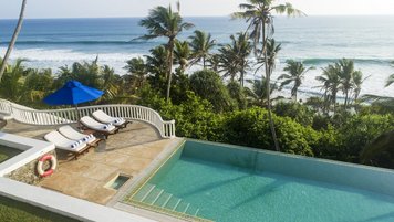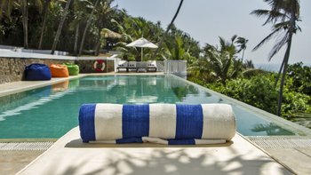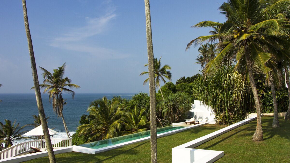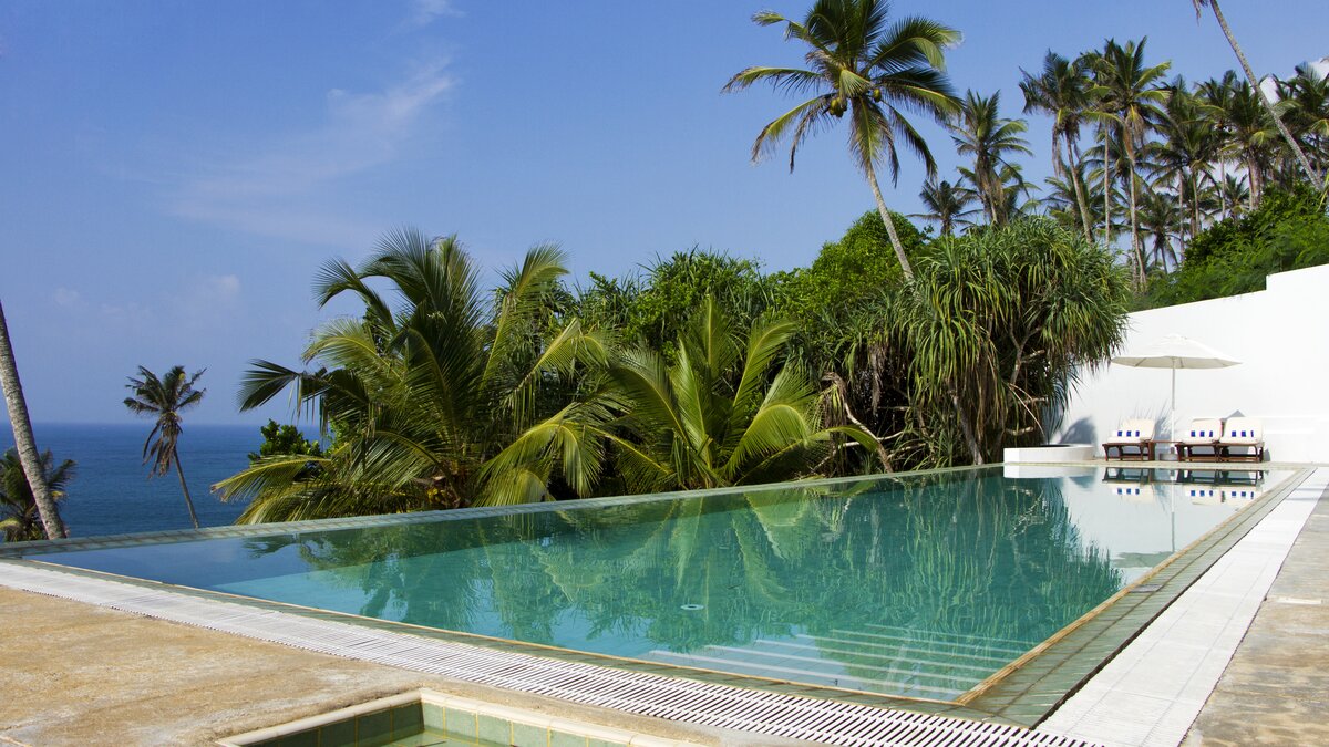 Draußen, am Rande der unteren Terrasse, befindet sich ein beeindruckender Infinity-Pool vor einer Meereskulisse. An anderer Stelle innerhalb der Gärten gibt es einen Sonnenuntergangspavillon, einen Meditationspavillon und einen Yoga-Pavillon sowie mehrere Hängematten für weitere Entspannung. Neben dem Pool führt eine Reihe von 134 Stufen hinunter zu einem weiteren Garten, von dem aus ein privates Holztor direkt zum Strand führt. Dieser besondere Strand ist größtenteils menschenleer und verfügt über einen schönen kleinen Felsen-Poolbereich, in dem man saisonal sicher paddeln kann. Palmyra befindet sich in einer hervorragenden Lage, nur 40 Minuten vom historischen Galle, 15 Minuten von Mirissa entfernt, um Walbeobachtung zu machen, und nur 10 Minuten von Weligama entfernt – ein großartiger Ort für Surfer.