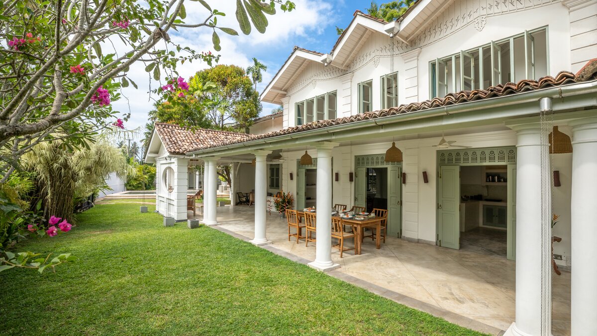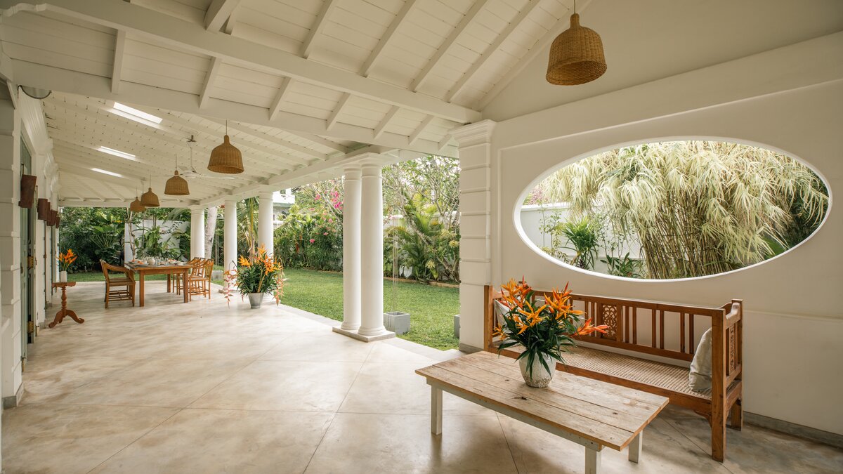 Pearl ist eine idyllische Villa mit sechs Schlafzimmern in Ahangama, Sri Lanka, komplett mit einem Poolhaus, Kochservice und luftigen, geräumigen Innenräumen. Dieser einladende Unterkunft wurde kürzlich mit schönen Innenmöbeln und minimalistischen Details renoviert und befindet sich nur einen kurzen Spaziergang vom nächsten Surfstrand entfernt.