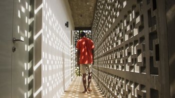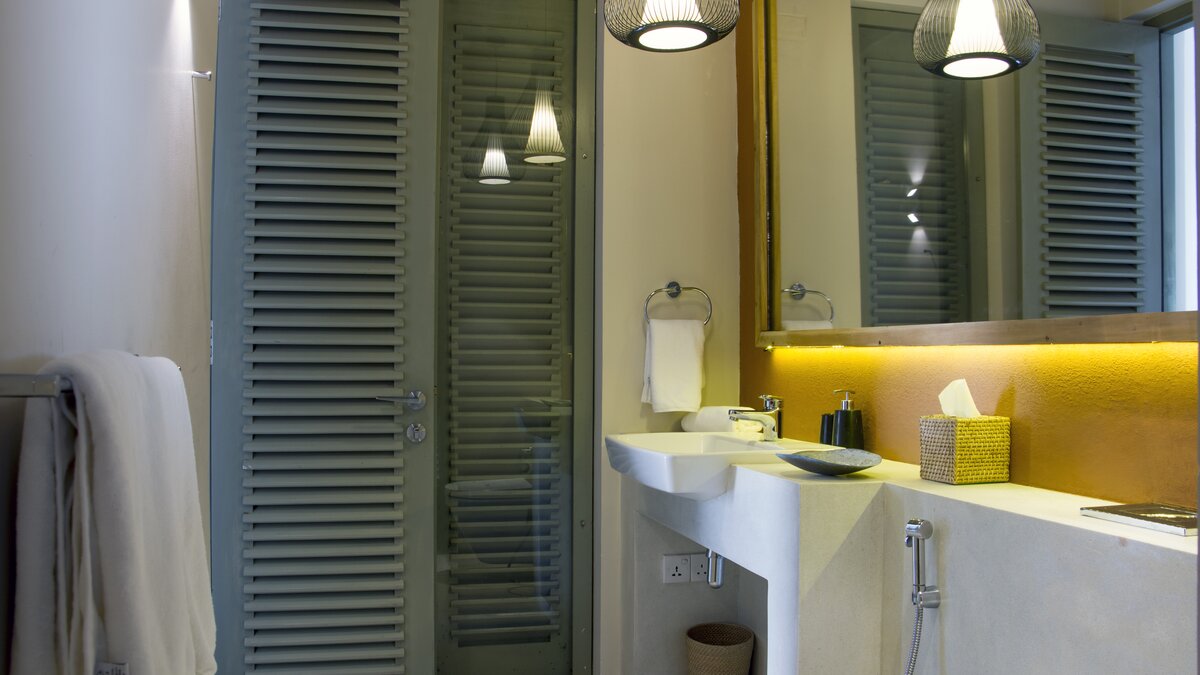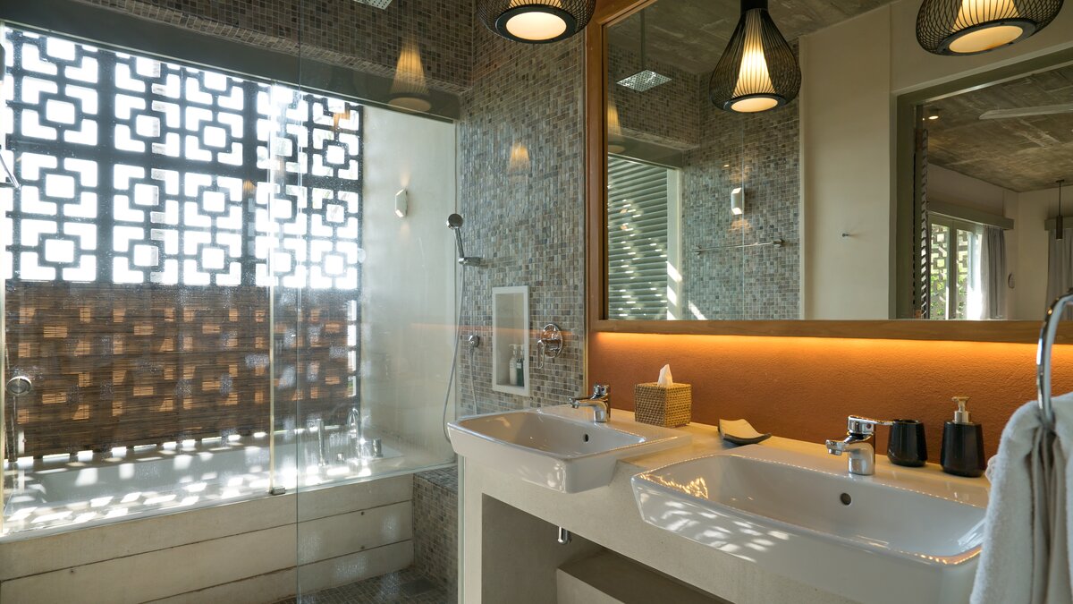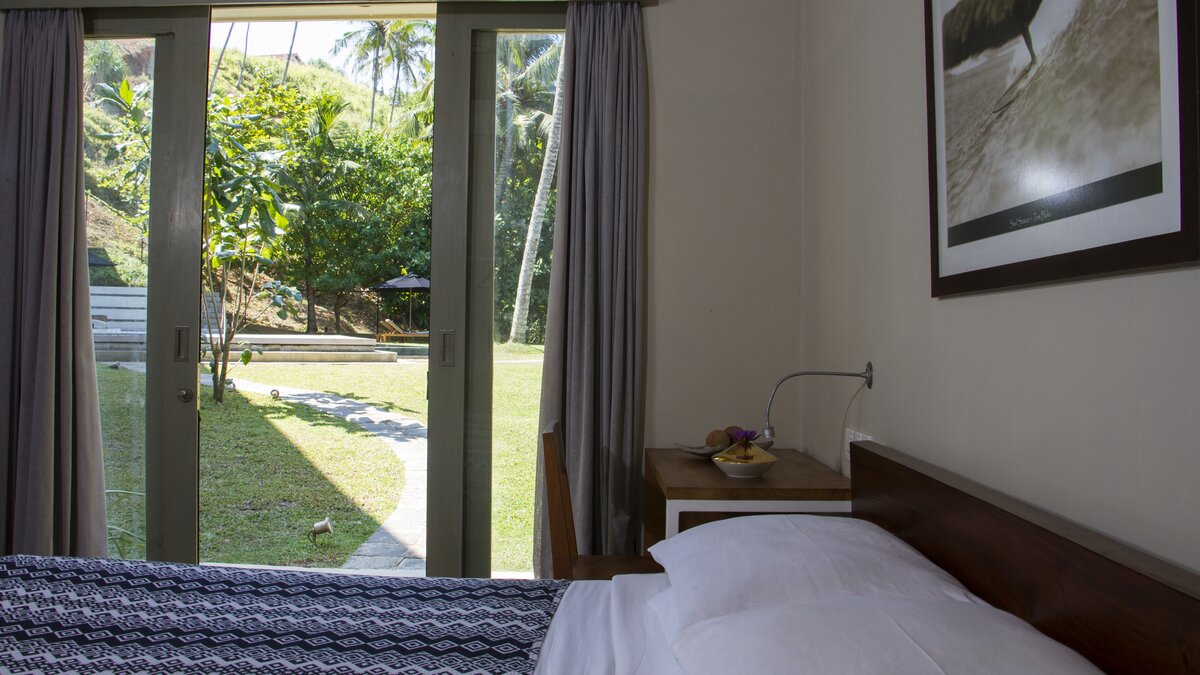 Im Erdgeschoss befindet sich ein Schlafzimmer mit eigenem Bad und Blick auf das Meer, das sich zur Poolterrasse öffnet. Im ersten Stock befinden sich vier Schlafzimmer, jedes mit eigenem Balkon und ungestörtem Meerblick; die Master- und Junior-Suiten haben beide eine Badewanne auf ihren Balkonen. Dies ist das perfekte Haus für Yoga-Liebhaber, da es ein wunderschönes Open-Air-Yoga- und Ayurveda-Studio gibt, das sich am Ende der Halle im ersten Stock mit Blick auf das Meer befindet. Wenn Sie weiter nach oben gehenund erreichen Sie den Dachgarten der Villa mit einem Gemüse- und Gewürzgarten und einer Bar, an der Sie bei Sonnenuntergang Cocktails trinken können – der Villa Manager ist Mixologe! Die letzten beiden Schlafzimmer liegen hinter dem Pool im Garten, jedes mit eigener Gartendusche, ideal für Teenager oder junge Erwachsene.