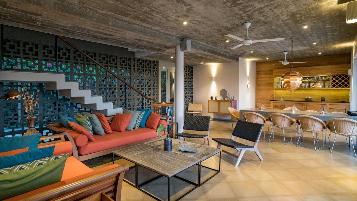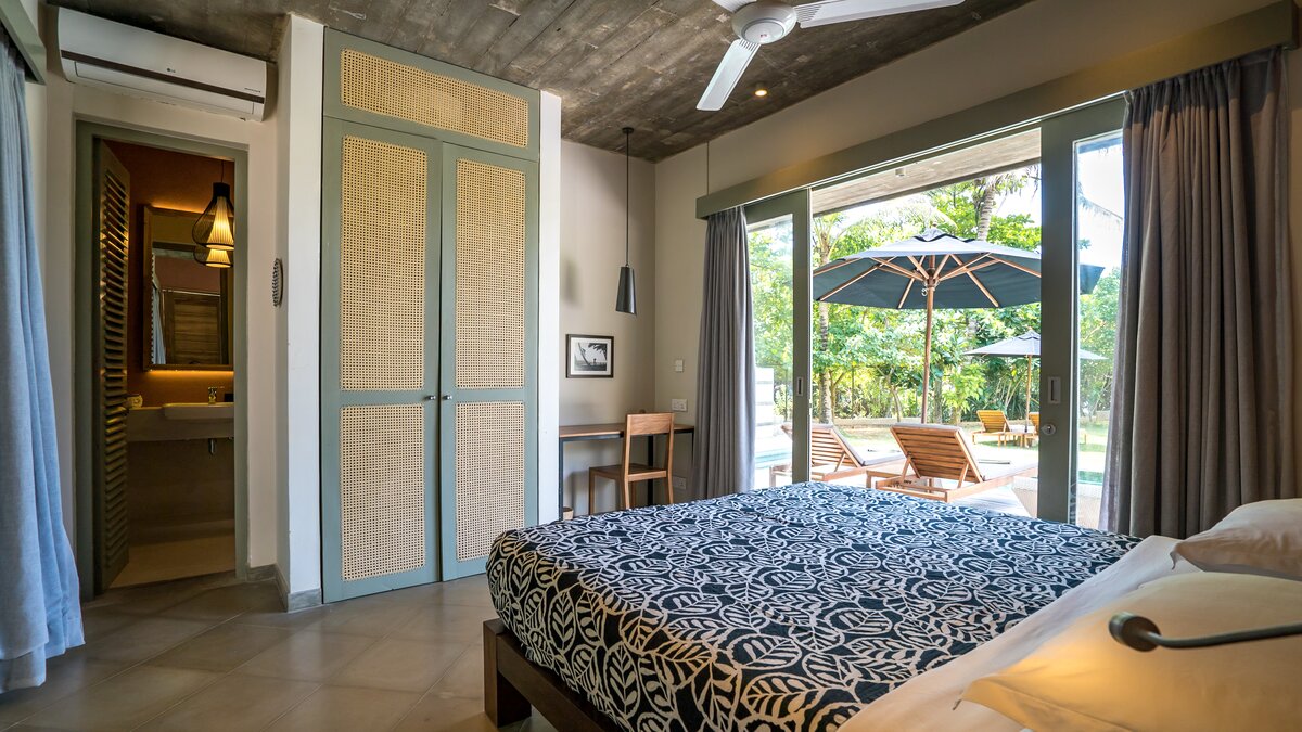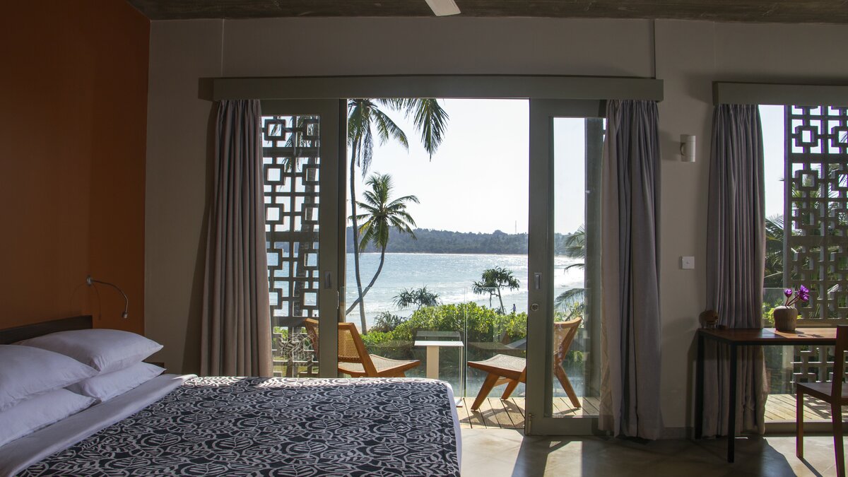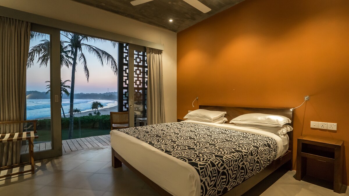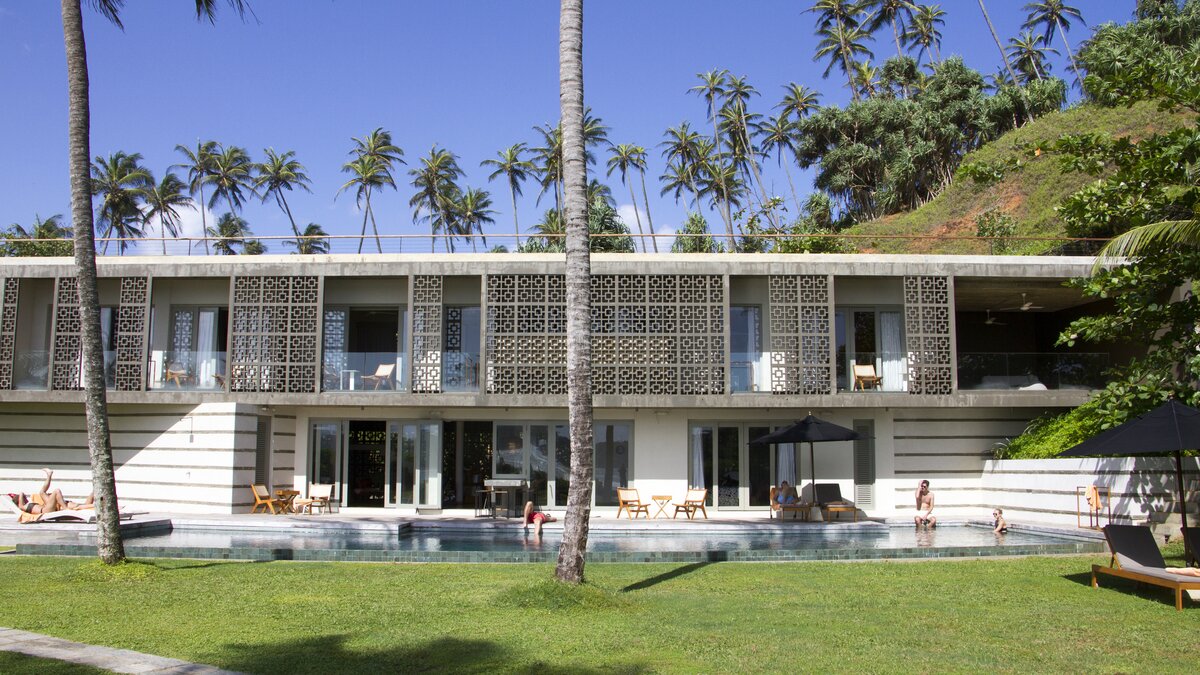 Tamarind Sands ist eine schicke, moderne und ultra-komfortable Villa an der Südküste Sri Lankas. Perfekt am östlichen Rand einer wunderschönen Sandbucht gelegen, haben die Gäste direkten Zugang zum weichen, goldenen Sandstrand darunter, während die Aussicht auf Sonnenaufgang und Sonnenuntergang von der Villa einfach spektakulär ist. Folgen Sie dem Soundtrack des Ozeans durch den Flur, vorbei an der Küche, in der der qualifizierte Koch und sein Team alle Mahlzeiten mit Zutaten von lokalen Bauern und Märkten zubereitenund einschließlich köstlicher Obstplatten und Picknicks am Strand, wenn Sie möchten – und in den offenen Grundriss Wohnbereich. Dieser ist mit superweichen Sitzgelegenheiten für Entspannung im Innenbereich und einem langen Esstisch ausgestattet, der sich auf die Terrasse mit Blick auf den atemberaubenden Indischen Ozean erstreckt. Dessen malerische Terrasse ist mit eleganten Holzliegen und Sonnenschirmen ausgestattet und befindet sich neben dem einladenden Infinity-Pool (mit Kinderbereich), wo Sie die Aussicht über den tropischen Garten genießen können.