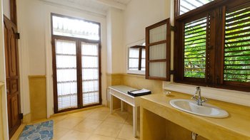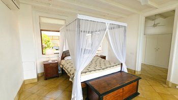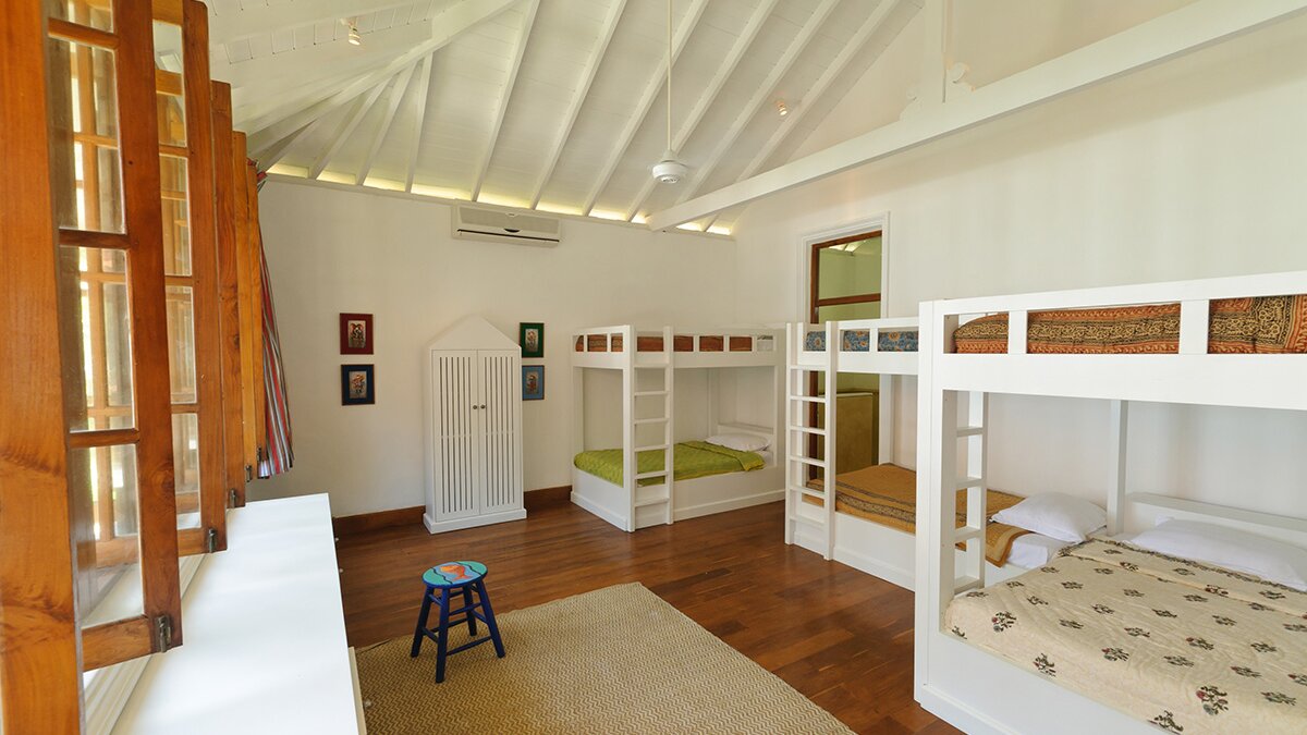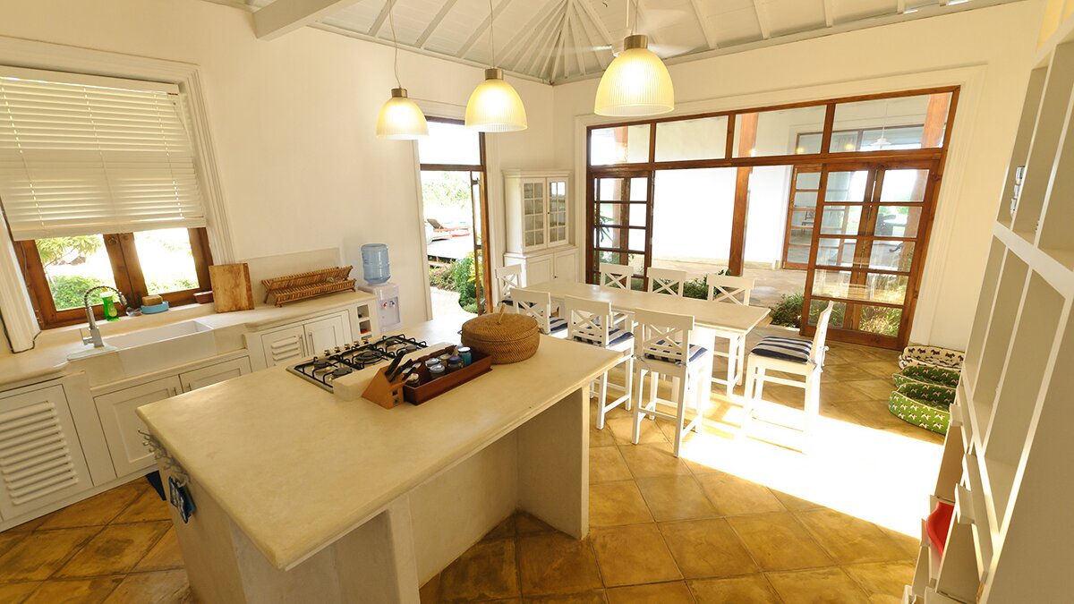 Das Turtle House ist wunderbar geräumig und durch sein cleveres Design gibt es viel luxuriösen Wohnraum, mit einem OFFENER GRUNDRISS Wohnzimmer, einem Spielzimmer am Pool und verschiedenen angrenzenden Balkonen und Terrassen. Eine gut ausgestattete Küche beherbergt marmorierte Steinarbeitsplatten, weiß getünchte Wände und gestreifte Frühstückshocker, was dies zu einem perfekten Ort für das Frühstück oder einen Kinderessbereich macht. Es gibt vier luxuriöse En-Suiten sowie ein lustiges Kinder-Etagenzimmer mit sechs Betten und einem Kinderbett. Diese Villa ist ein Traumferienhaus für Familien mit Kindern – es gibt einen Dschungel-Fitnessraumund Tischtennis, Brettspiele und anderes Kinderspielzeug und Bücher; der einladende L-förmige Pool grenzt an das Haus mit Blick auf die makellose Rasenfläche und spektakulärem Meerblick. Ein Team von 6 Mitarbeitern umfasst einen talentierten Koch, der jede Mahlzeit zubereitet.