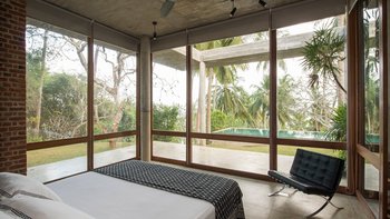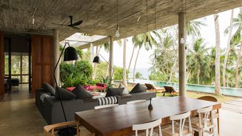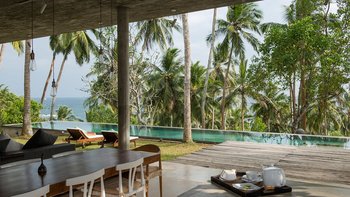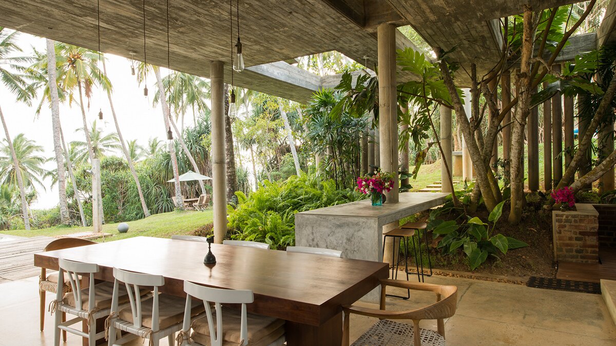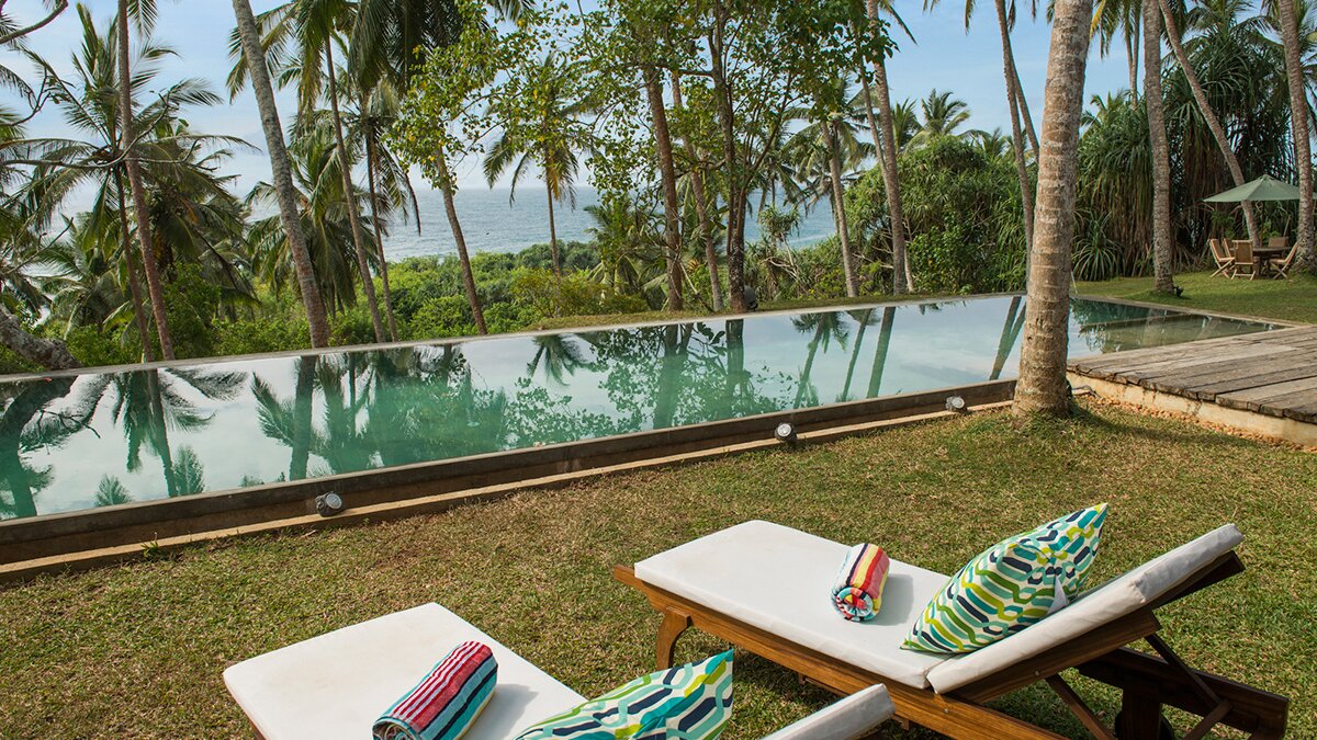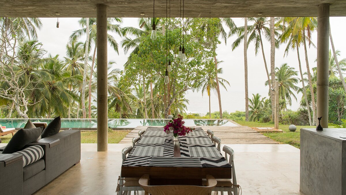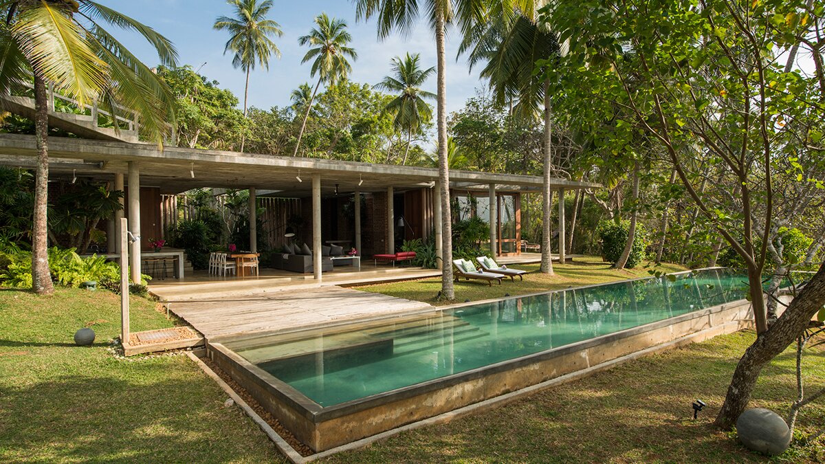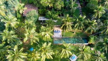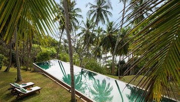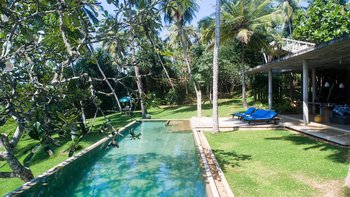 Das Woodapple House befindet sich in perfekter Lage mit herrlichem Meerblick und genießt den wunderbaren Soundtrack der Wellen, die gegen das Ufer plätschern. Dieser moderne Anwesen mit drei Schlafzimmern ist von üppigem Dschungel umgeben und über einen eleganten unterirdischen Eingang erreichbar. Es umfasst die Umgebung mit offenen Wänden und Skylights. Der offene und geplante Wohnbereich verfügt über einen komfortablen Sitzbereich mit einem L-förmigen Sofa, einer Frühstückstheke und einem Esstisch im Freien. Es gibt drei Schlafzimmer mit eigenem Bad, darunter das Hauptschlafzimmer mit Kingsize-Bett, einem Queensize-Bett und einem Zweibettzimmer, die alle entworfen wurden, um ihre Umgebung weiter zu verbessern. Die Master Suite verfügt über eine eigene kleine Terrasse mit Blick auf den Pool. Jenseits des Wohnraums befindet sich ein Arbeits-/Fernsehraum mit einem polierten Zwangsvollstrecktisch, der auf den gemütlichen Wohnraum mit einem Flatscreen-TV und einem bequemen Ecksofa blickt. Dessen einzigartigste Merkmal dieses Hauses ist der Dachgarten mit Rasen und einer Aussichtsplattform, die ideal für einen Sundowner ist. Über die gesamte Breite des Wohnraums erstreckt sich der fabelhafte 20-Meter-Pool mit Blick auf den Indischen Ozean. Ein frischer Rasen mit sich wiegenden Palmen umgibt den Poolbereich. Ein geschützter Tisch und Stühle bieten einen idealen Ort zum Frühstücken. Auf dem Grundstück der Villa befindet sich eine ruhige Yoga-Plattform, während Treppensteine hinunter zum privat zugänglichen paradiesischen Strand führen.