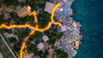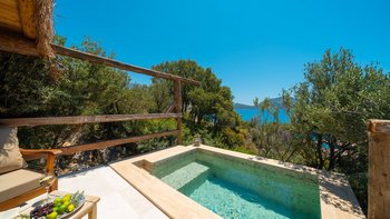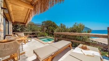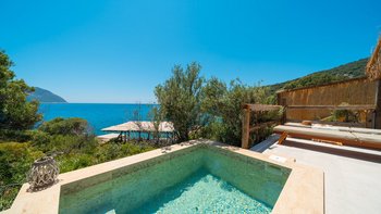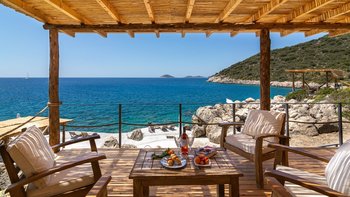 Die Villa bietet Zugang zu sechs Badeplattformen im Beach Club-Stil, die direkt am Wasser gelegen sind. Diese sind privat für das Anwesen bestehend aus sechs Häusern, die für größere Gruppen von bis zu 30 Personen zusammen gebucht werden können. Dazu gehören die Villa Sahil, die Villa Kenar, die Villa Keyali, die Villa Akim I und die Villa Akim II.