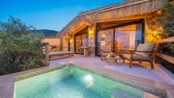 Die kürzlich im Jahr 2023 erbaute Villa Akim III ist geräumig, stilvoll und romantisch. Im Inneren der Villa befindet sich ein modernes und einladendes Zimmer mit offenem Schnitt mit einem gemütlichen Wohnbereich, einem Esstisch und einer gut ausgestatteten Küche. Dessen Zimmer ist mit einem Doppelbett mit raumhohen Doppeltüren vervollständigt. Draußen gibt es eine schöne, abgeschiedene Terrasse mit einem Essbereich im Freien und einem fabelhaften Infinity-Pool.