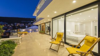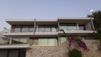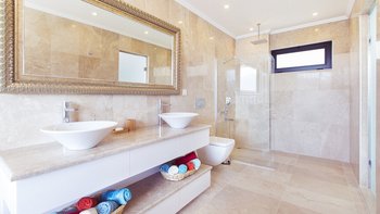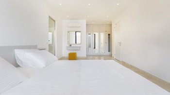Die Villa Kalamar erstreckt sich über drei Ebenen und umfasst ein unabhängiges Nebengebäude im unteren Erdgeschoss mit einem Schlafzimmer und einem Bad, ideal für Teenager oder Großeltern. Im Haupthaus befinden sich vier weitere Schlafzimmer, die sich über das Erdgeschoß und die ersten Stockwerke verteilen. Jedes Schlafzimmer im Haupthaus öffnet sich auf einen Balkon mit Blick auf die Bucht von Kalamar, während die Zimmer im ersten Stock mit großzügigen Einbauschränken ausgestattet sind.